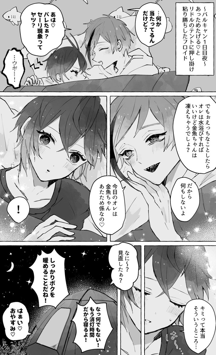 フロリド🦈🌹バルキャンには沢山の夢と希望と可能性をもらったし、後輩を褒めてよき先輩してるリドチャンに牽制ムーブするフロくんの幻覚を見ても許される濃さだった🏕