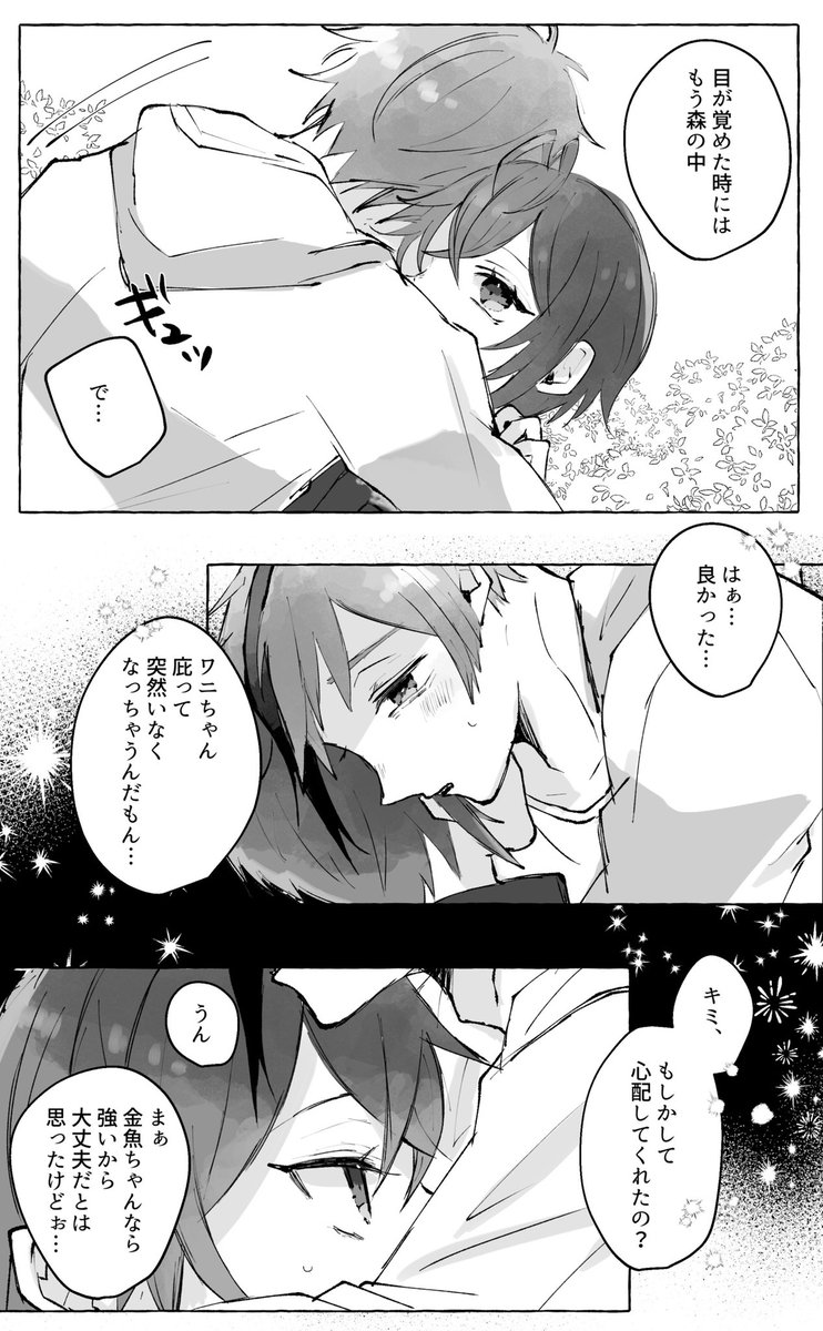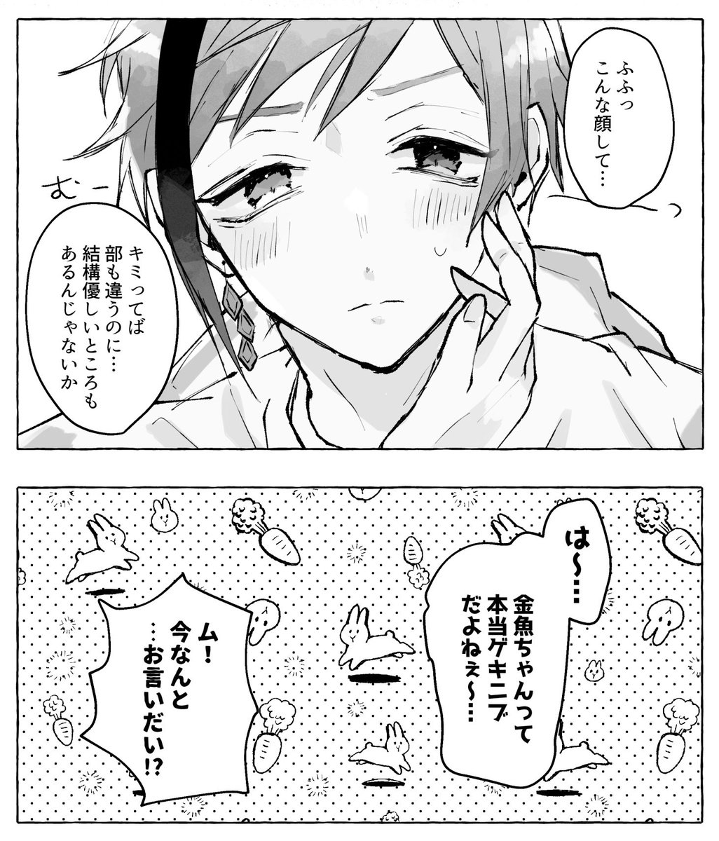 フロリド🦈🌹サンキューバルキャン…🏕唇の青さに気付いたり惜しみなく魔法使ったりするのは簡単に命を失う環境で生きてきたせいなのもあると思うので、結構本気で金魚チャンを心配してるフロくんいたらかわいいね