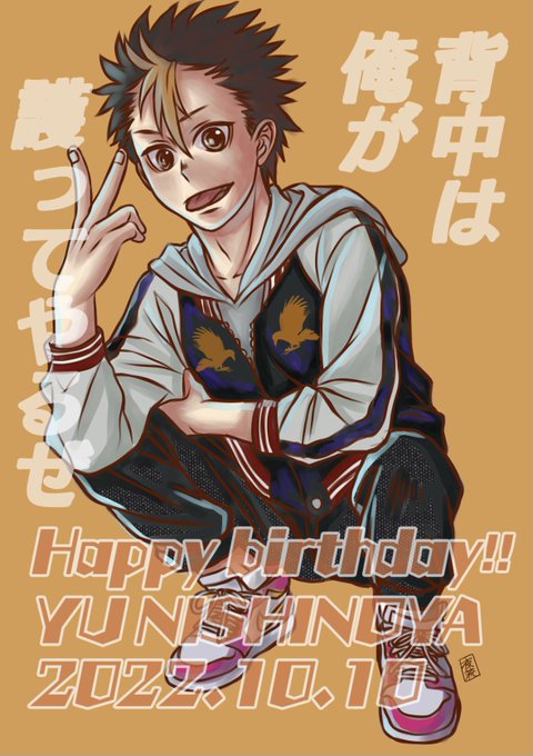 ノヤっさん誕生日おめでとう〜\(//∇//)\🎂🎉🎁 小さな身体で志しはデッカく! 世界中を渡り歩く漢 みんなを鼓舞する姿にいつも励まされてます。 #ハイキュー #haikyuu #西谷夕誕生祭2022