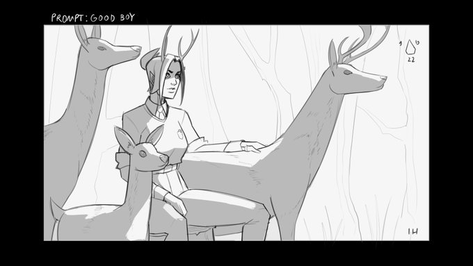 I had to post this sketch separately because I love it, and I am considering making an illustration out of it. It's been all building up to this 😄🦌#sketch #inktober2022