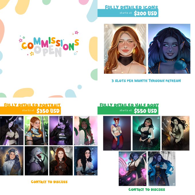 🍭 commissions open 🍭 Interested in one of these commission types? Grab one now for BASE PRICE this 2023. Fill out the form here: forms.gle/Ph8fAVTN2rXNWJ… #dndartist #ttrpg #commissionsopen
