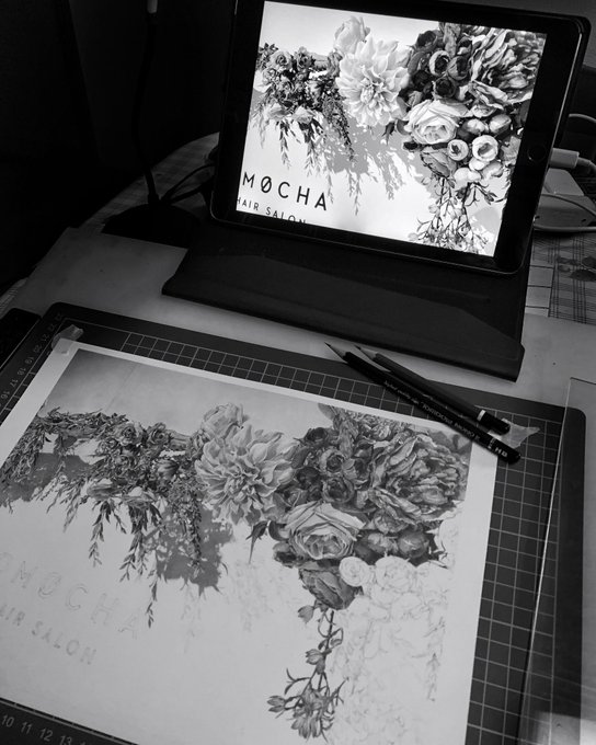 モノクロにしても ちゃんとお花してるぅ~! これはこれで オサレではないか😋✨ #鉛筆画 #色鉛筆画 #絵 #イラスト #デッサン #スケッチ #イラスト #画家 #絵描き