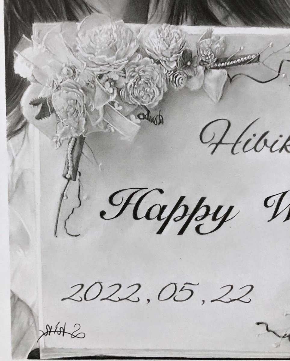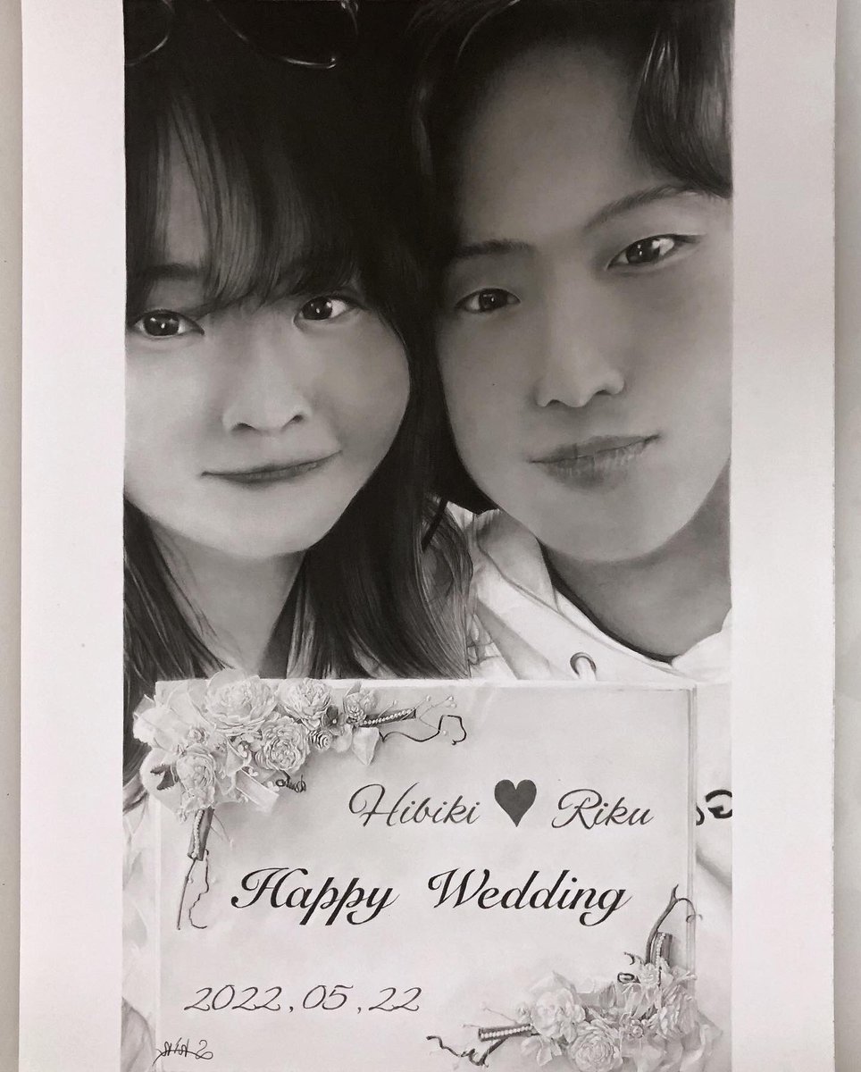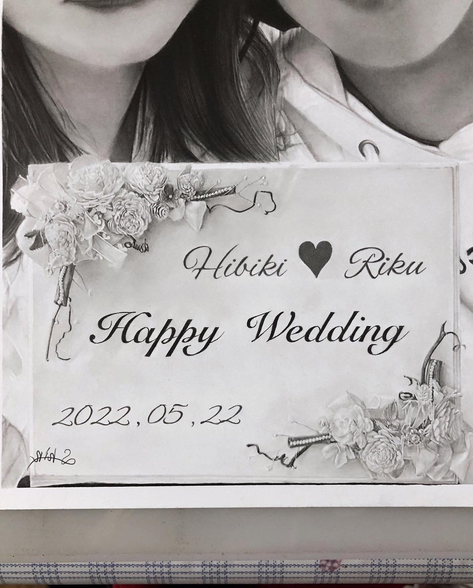 サプライズ結婚祝いとして、 従兄弟からオーダーもらってた絵の完成🙌🏻✨ やはり花系はしんどかった… でも無事に喜んでもらえたから結果オーライ😌 ご本人たちにも喜んでもらえて、気にいってもらえますよーに…💫 instagram.com/p/CjnJkKSvJni/… #鉛筆画 #絵描き #似顔絵 #秋田