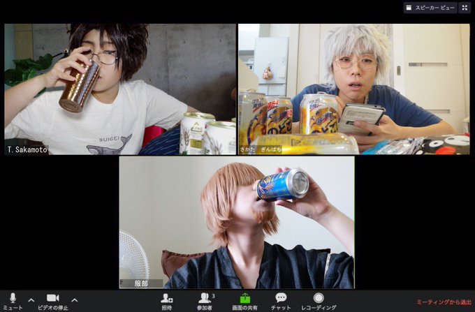 6 19 ⚠︎コスプレ、捏造 銀魂 3z 念願の数国社でオンライン飲み会(風)✌️ 20/08/03 14:58