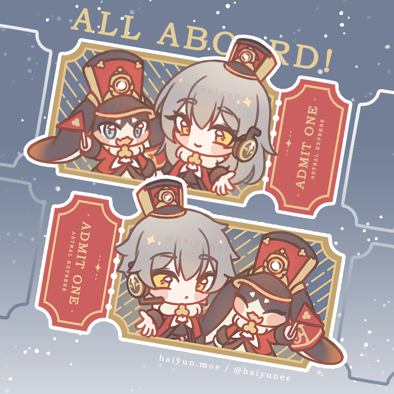 🚂 ASTRAL EXPRESS TICKET GIVEAWAY 🚂 win a double-sided keychain & sticker set! ✦ LIKE & RT this post! ✦ REPLY with the protagonist you chose! new merch is up at haiyun.moe! free shipping for US orders $40+!! will be choosing 2 winners, ends 6/30!