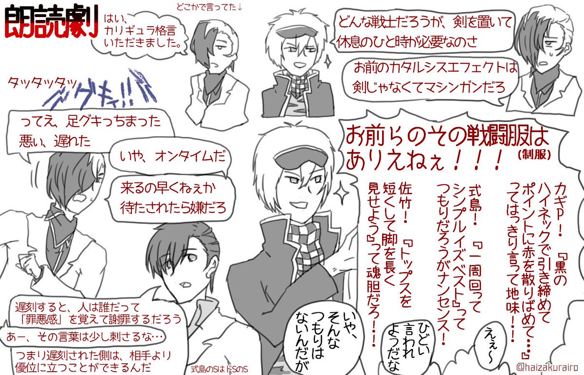 ぼいぱ殴り書きレポ(?) 朗読劇の好きなシーン描きました。笙ちゃん先輩おおめ。聞き違いあったらすみません。