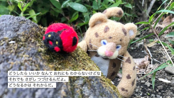 1 4 【ラゴの声が聞こえてきたよ】 どうしたら いいか なんて おれにも わからないけどな それでも さがし つづけるんだよ。 どうなるかは それからだ。 ----- 動けば、始まることもある #羊毛フェルト #絵本 #ジャガー #Jaguar #どようび 22/01/22 20:00