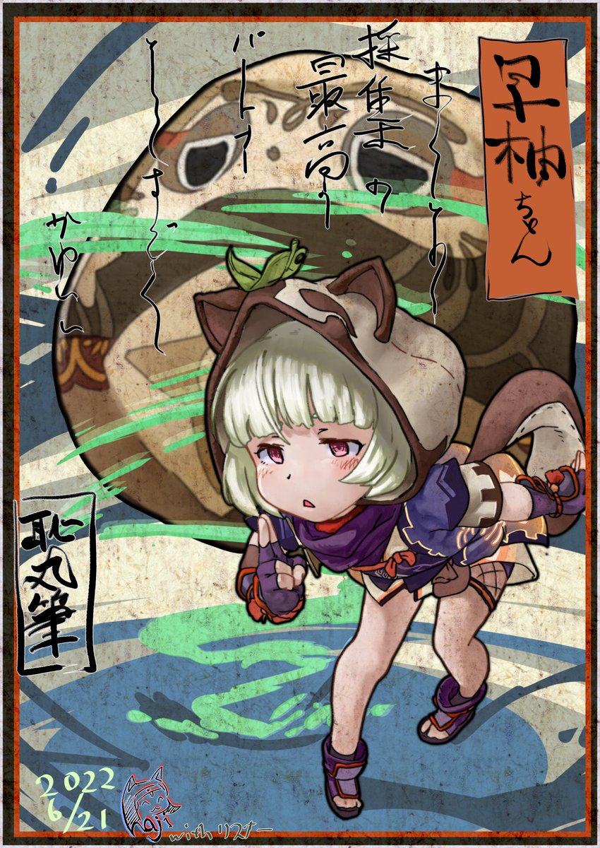 お絵描きガチャレンジ第二弾 タルタリスを撃破したので、稲妻地域行って一刻も早く早柚ちゃんを強くして闊歩したい… 戦闘面でガンガンしたいけど、こういう採集キャラも性に合ってるので、早くお迎えできて良かったです #ガチャで引いた子を描くチャレンジ #原神 #イラスト #illustration