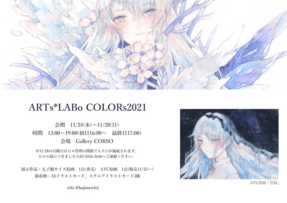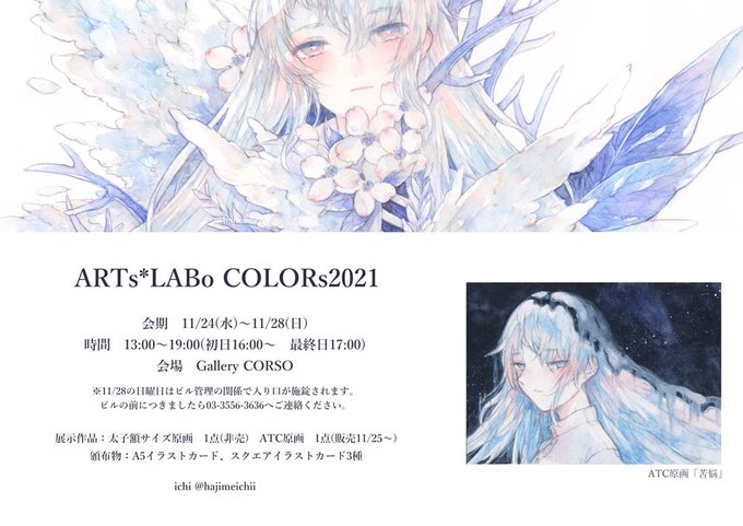 ARTs*LABo様主催の「COLORs2021」に額装1点(非売)、ATC原画1点で参加します✨ 今まで描いてきた作品のモチーフをたくさん取り入れて、それを大好きな色で塗った今年を締めるにふさわしい作品になりました。よろしくお願いいたします🌸 会場詳細はこちら→creatorsbank.com/ARTs_LABo/even… #ARTsLABo