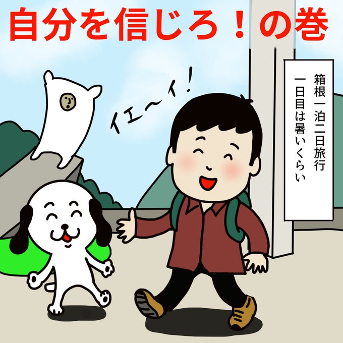 4コママンガ「自分を信じろ!の巻」先日、箱根に旅行したときのエピソードです。 #漫画が読めるハッシュタグ #4コママンガ #4コマ漫画