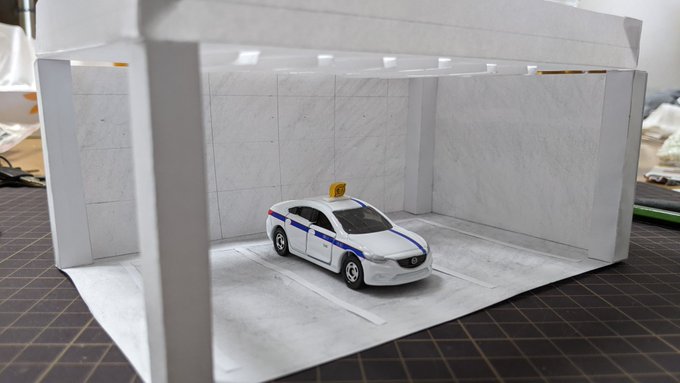 0 5 画用紙を切り貼りして、地下駐車場の一角のような雰囲気。 パイプとかを這わせれば完璧かな? #トミカ #ペーパークラフト #駐車場 22/10/22 17:13