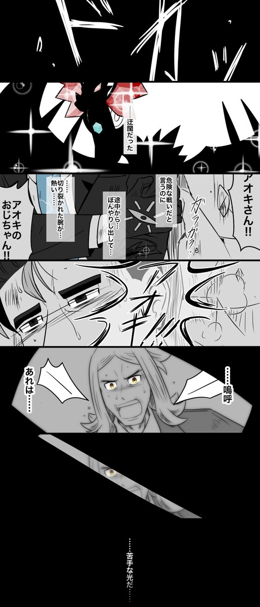 エリア0️⃣or0️⃣ゲート辺りでプ口ポーズするハサアオ漫画(幻覚捏造、軽めの怪我描写有) 以下のポイピクはKiss描写を含む後半付き。 poipiku.com/3742061/835852… ※元ネタは某海賊映画のプ口ポーズシーンです