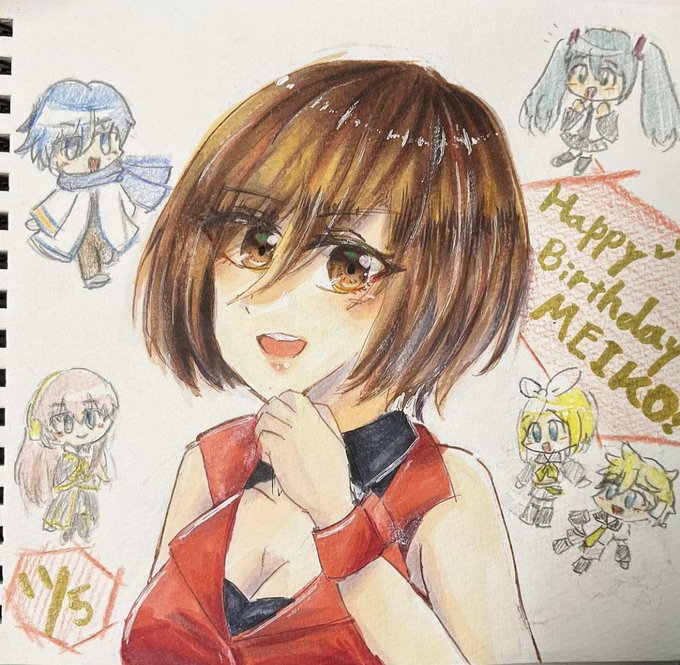 MEIKOさんお誕生日おめでとう!! かっこよくってかわいい力強い歌声が大好きです!! 過去絵でお祝い失礼します!🎂🎁🎉 #ボカロ #MEIKO誕生祭2022 #MEIKO #MEIKO18th