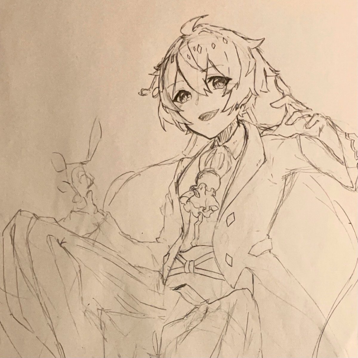 14 64 #モンスト深夜のお絵かき60分一本勝負 主催者様 ( @mnst_onedro ) お題 「 怒り笑い 」 より、 ラファエル 23/06/21 23:56