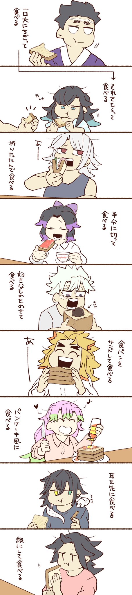 柱と寝相(再掲)。 いまだに自分の寝相は最悪です👍 この中では伊黒さんぐらいに悪いです💤
