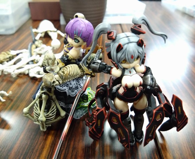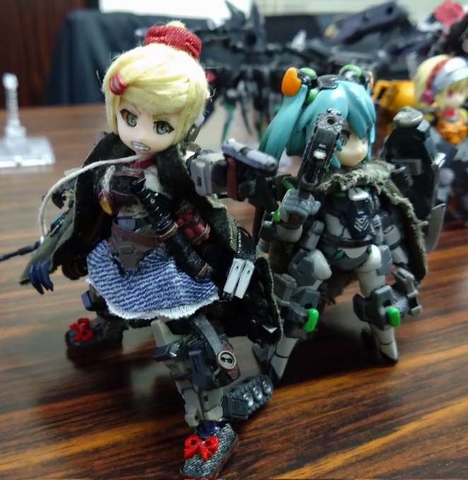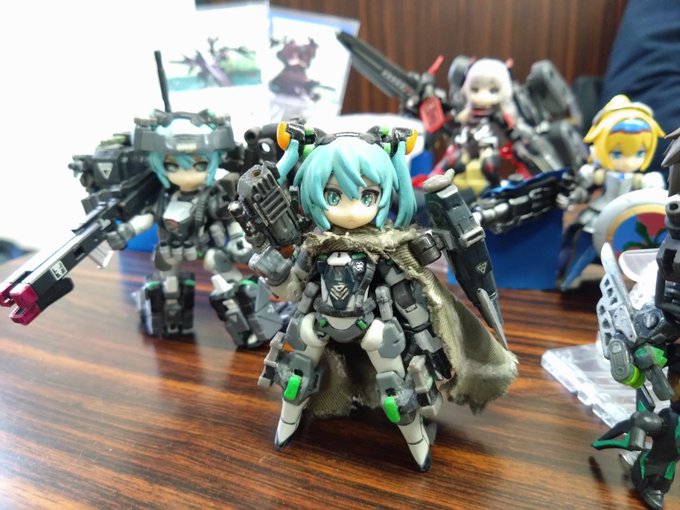 こちらのダークな感じの娘さん達は私の癖に刺さって大変でしたw 筆塗りだそうですが技術力高すぎで······すいません写真が下手すぎてカッコよさが上手く撮れてませんね····· #デスクトップアーミー #CDTA