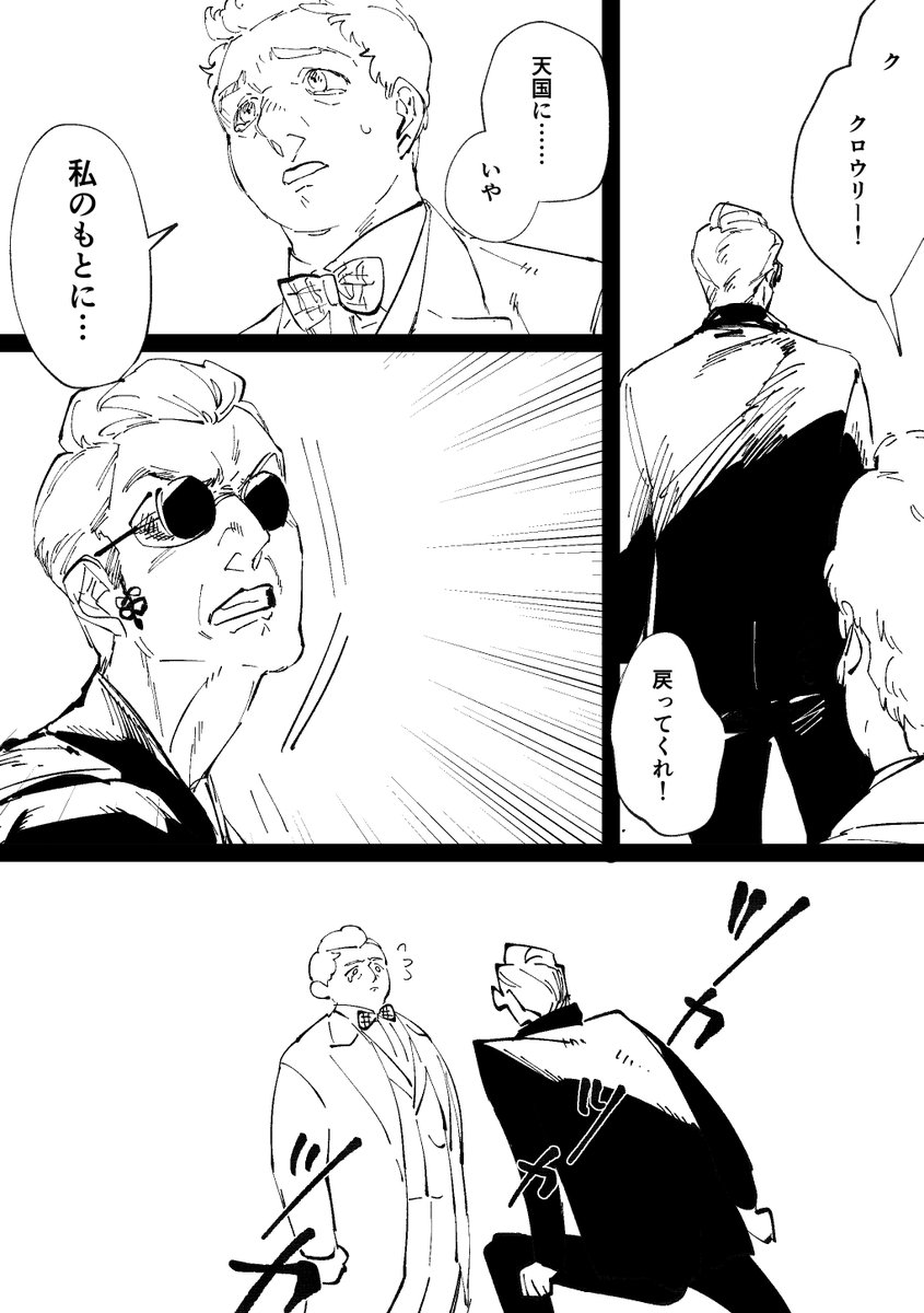 #GoodOmensFanArt S2EP6 Come back to の後立ち止まるクロウリーをみて、 続く言葉がheavenでなくmeだったら何か変わっていたのかなって思っちゃった