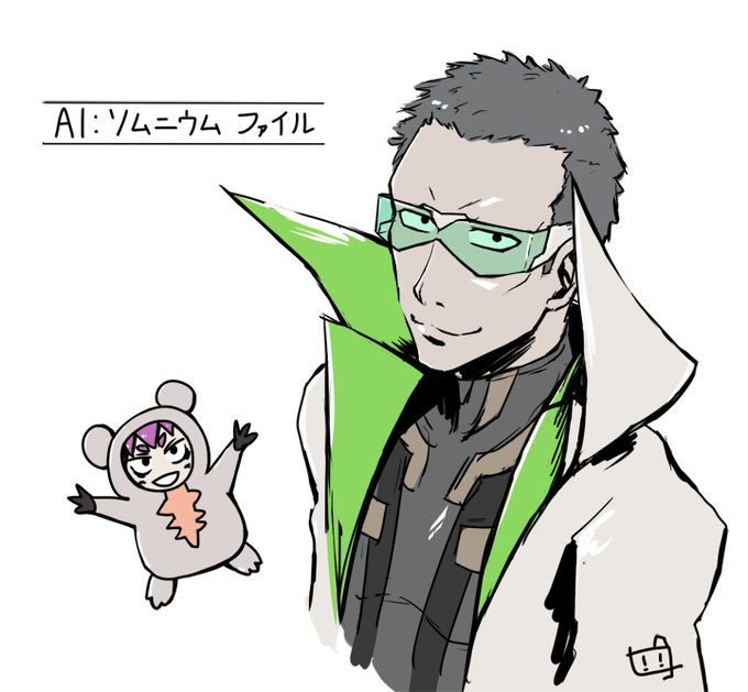 ピュータさん(CV:後藤ヒロキ)いつもラフ描いて満足したら放置しちゃうんですが、勿体ないと言われたのでビントロ追加してUP。 ゲーム実況との後藤さんのギャップが凄くて、大人な格好良さに痺れました📦 #AIソムニウムファイル