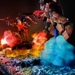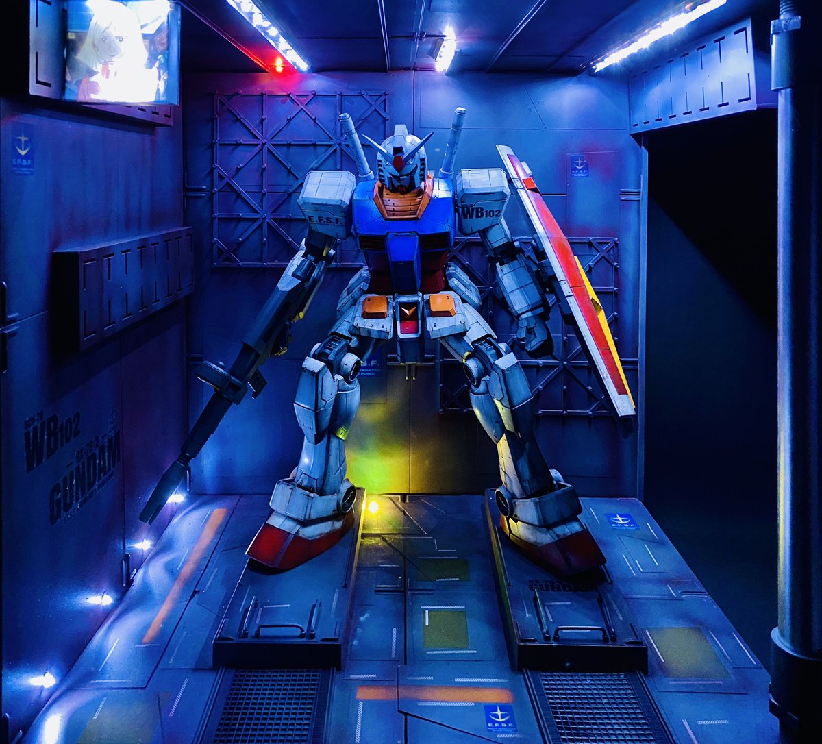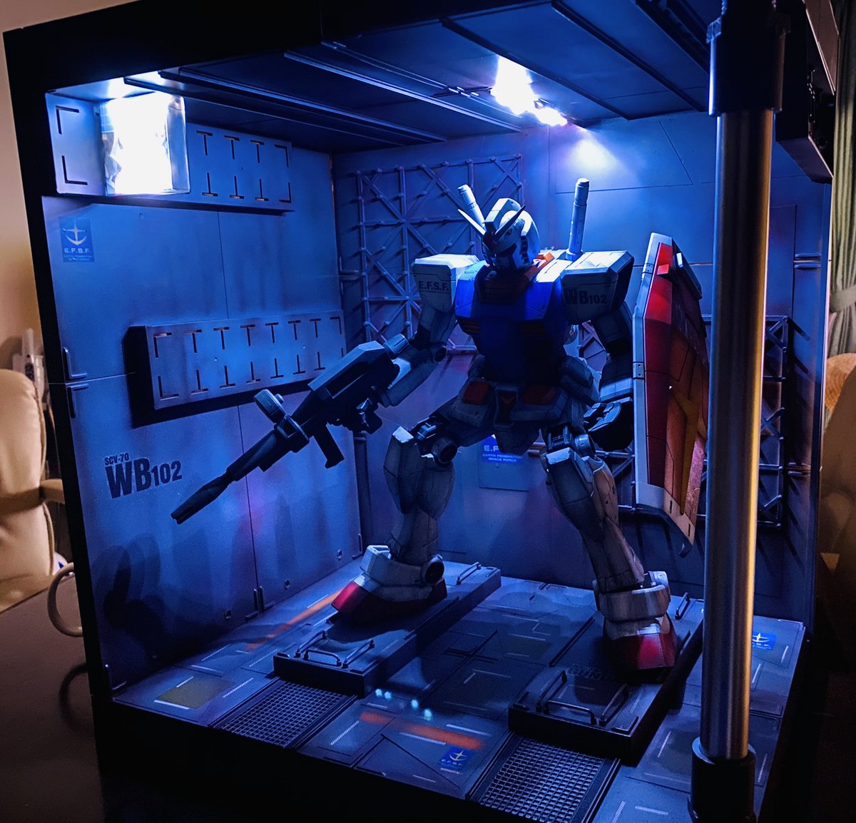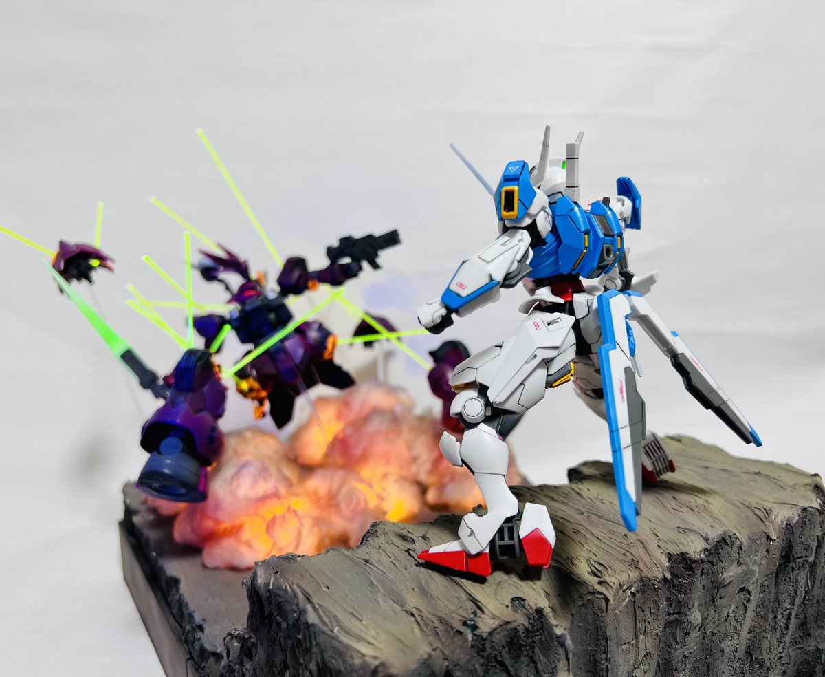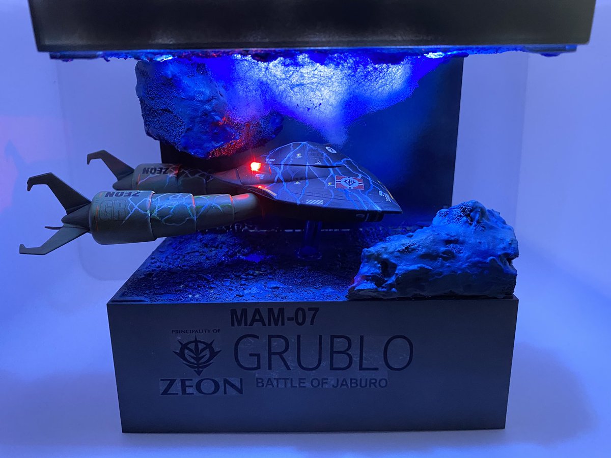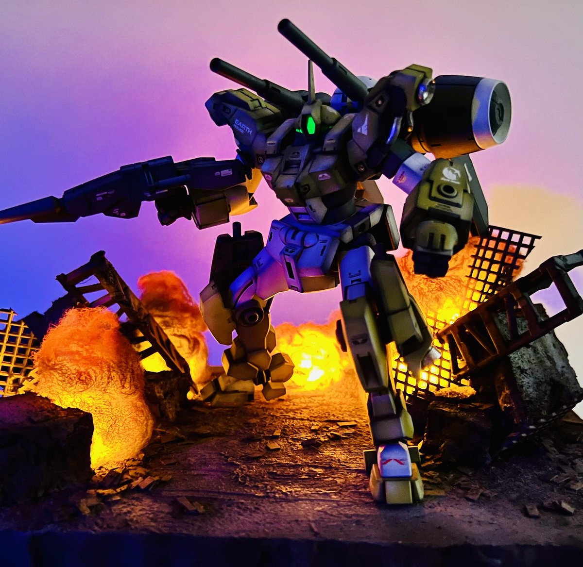 先日の変わったグラブロがこうなりまして💦 照明を落として作品だけ見てみると、綺麗な演出ができて、これはこれで満足です😁 #ガンプラの画像を貼るとRTされると聞いて #ガンプラ改造 #ガンプラは自由だ