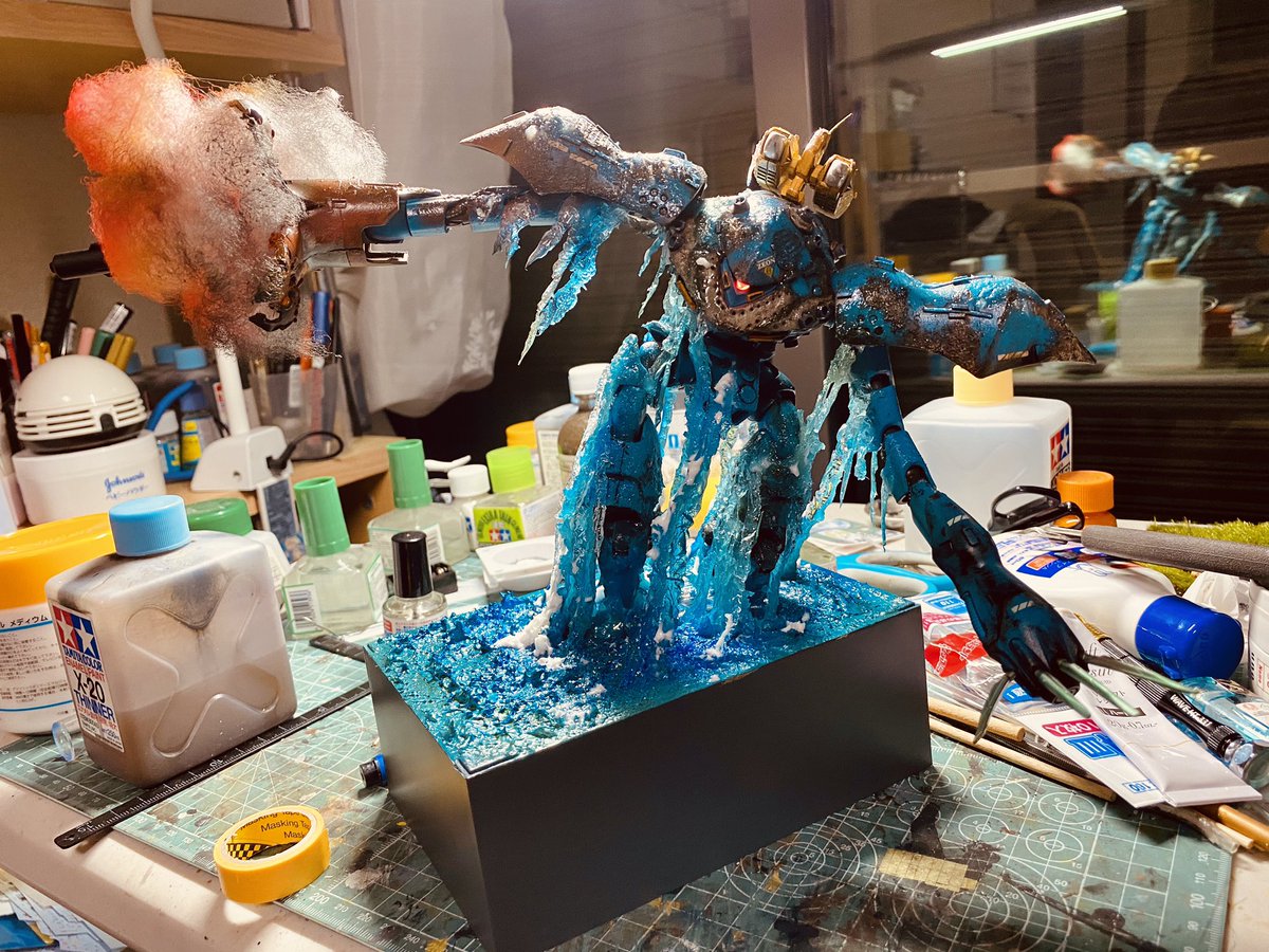 1/100SCALEのガンダムグシオンがついに完成しました🤗 レジンを使わない水表現だったり、ベースもチカラを入れた作品になりました。 #鉄血のオルフェンズ #ガンプラ #ガンダムグシオン