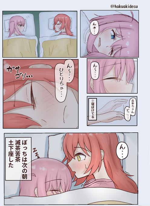 お泊りしたときのぼ喜多。 朝起きたら喜多ちゃんの目の下にクマが出来てたけどやけに満足そうな顔をしていたらしい #ぼっち・ざ・ろっく