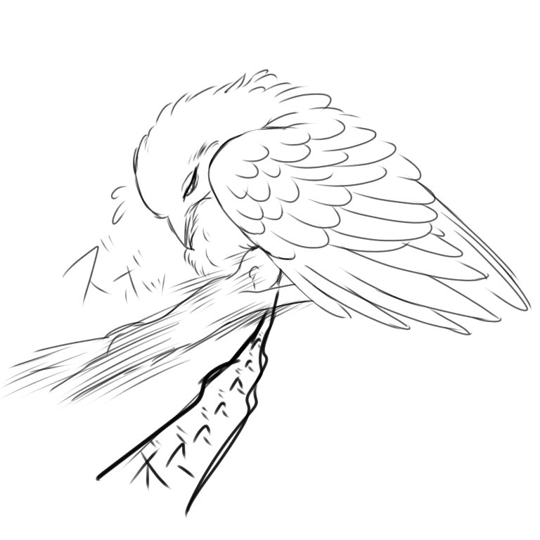 3 11 でかい鳥には関係ないですが過去のらくがき再利用して色つけた同じく同族に塩なヒカリも置いときます #影結び 23/02/23 23:06