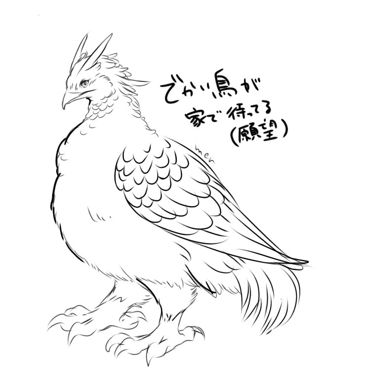 #でかい鳥が家で待ってる 本当は午前中にあげるべきらくがきだった…!