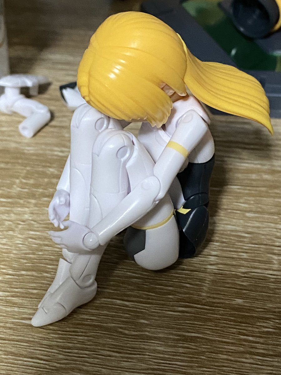 今更ながらアン作ってるけどめっちゃ綺麗に体育座りしてる!でもなんか違和感!(???? #メガミデバイス #武装神姫
