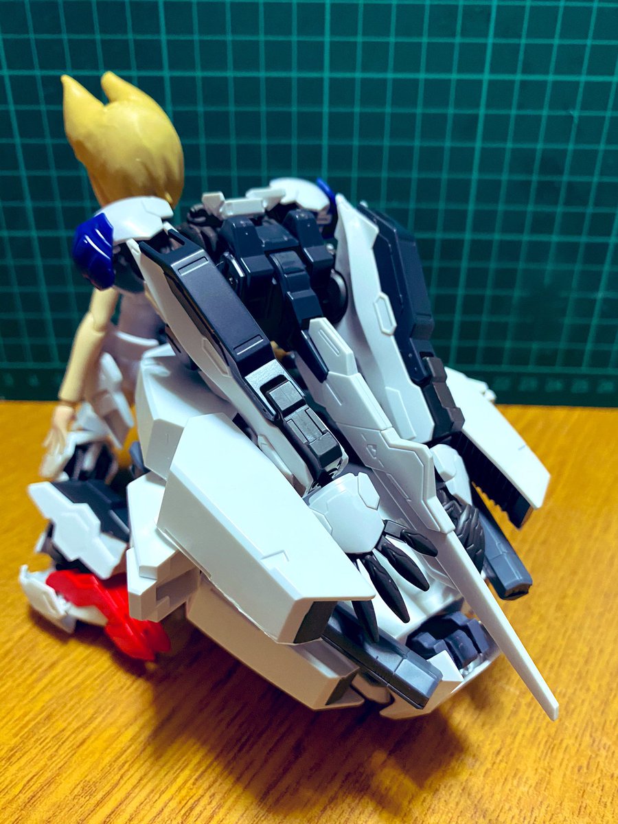 寝る前に進めてた九尾改造進捗 ツインテールの変更とフェイスパーツいじり メスガキめぇ…(名もなき連邦のエース) それはそれとして意外と安定して自立できるなこの背部パーツ… #メガミデバイス