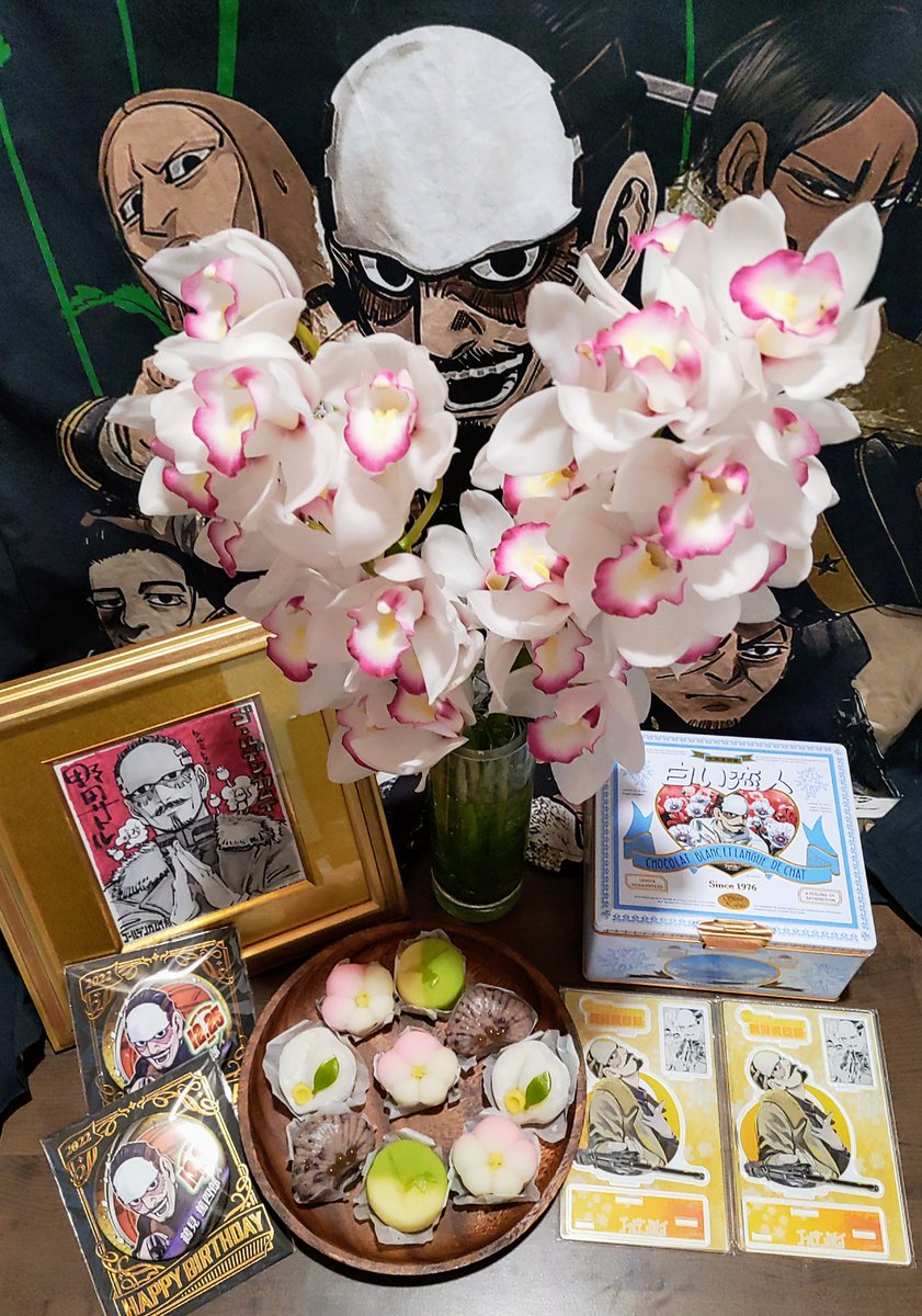#鶴見篤四郎誕生祭2021 #鶴見篤四郎生誕祭2021 鶴見中尉殿お誕生日おめでとうございます! 本誌連載中にお祝い出来た喜びを噛みしめています 貴殿の存在に感謝します。どうぞ100歳まで長生きして下さい!!!! (お花のアレンジにご尽力下さったお二方本当にありがとうございました😭)