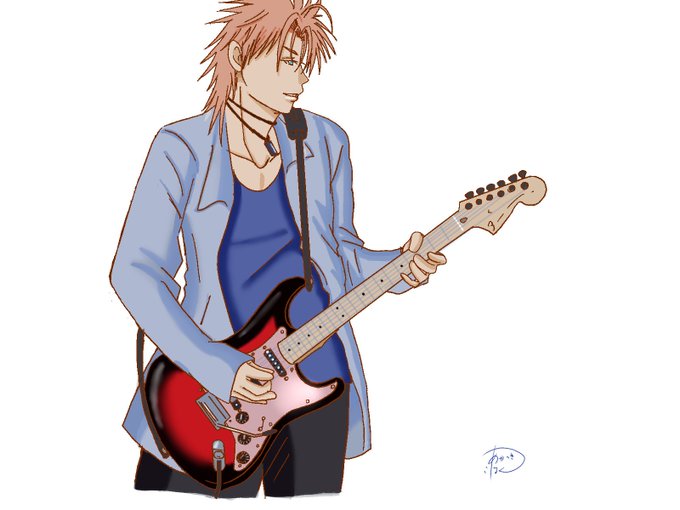 1 1 @CHLionRagbaby ギターを弾く手が難しいので kenちゃんので描いたよ。手を描くのは苦手です。( ̄▽ ̄;) 22/07/19 22:10