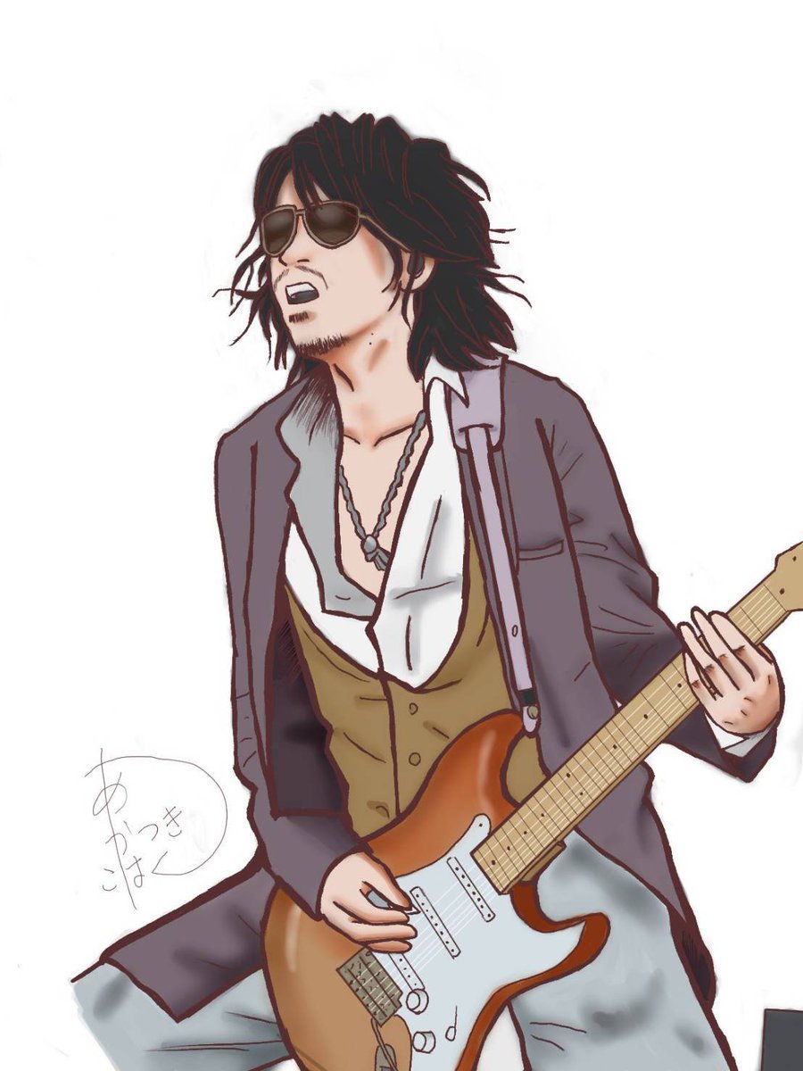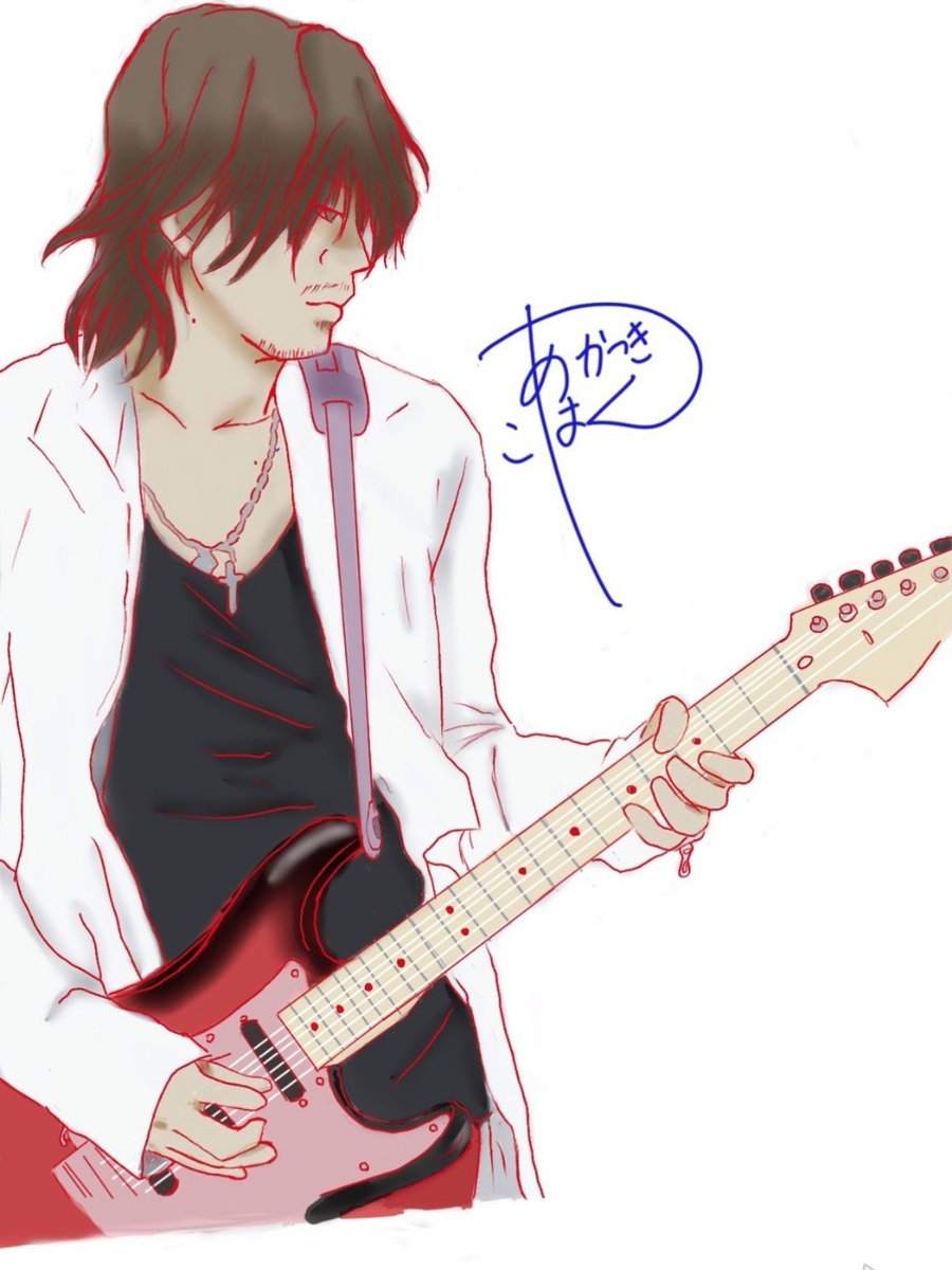 @CHLionRagbaby ギターを弾く手が難しいので kenちゃんので描いたよ。手を描くのは苦手です。( ̄▽ ̄;)