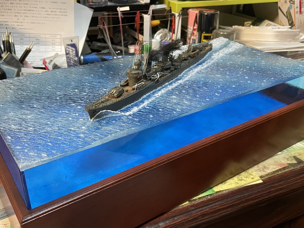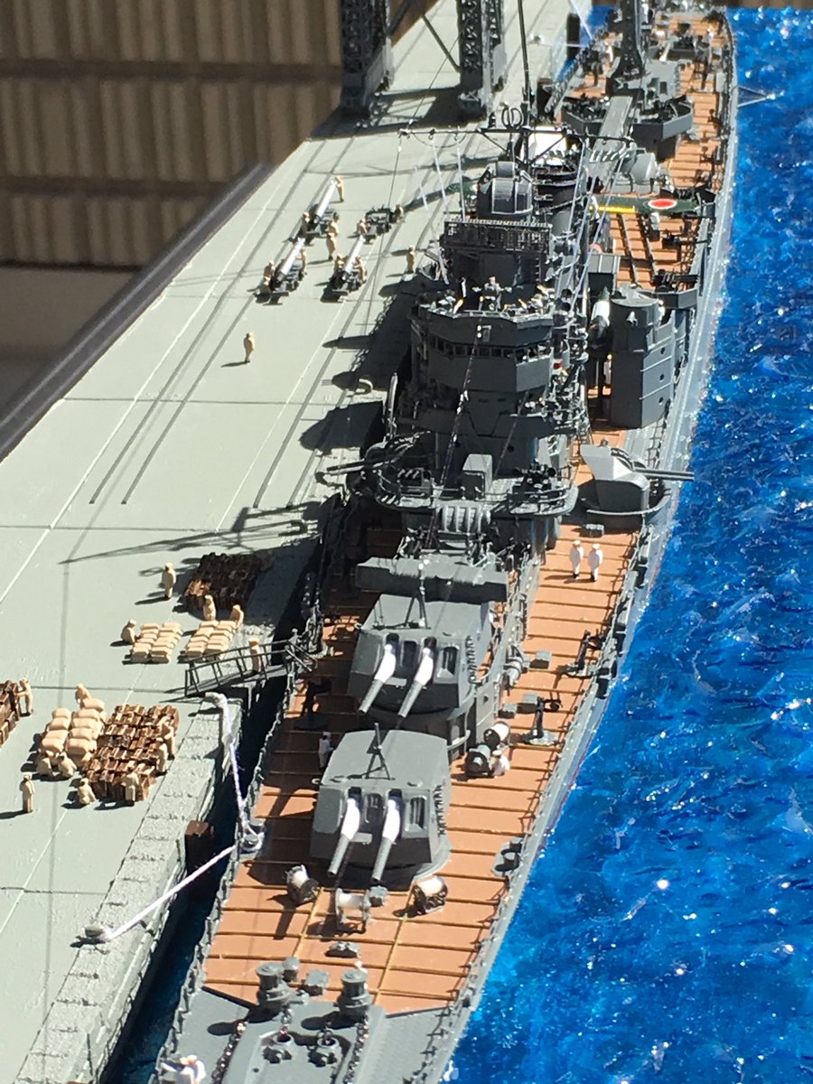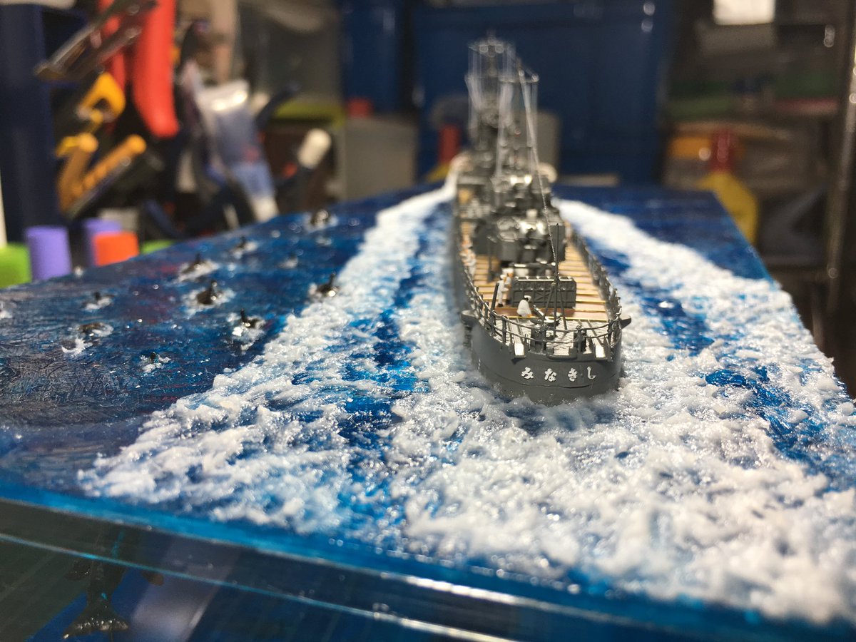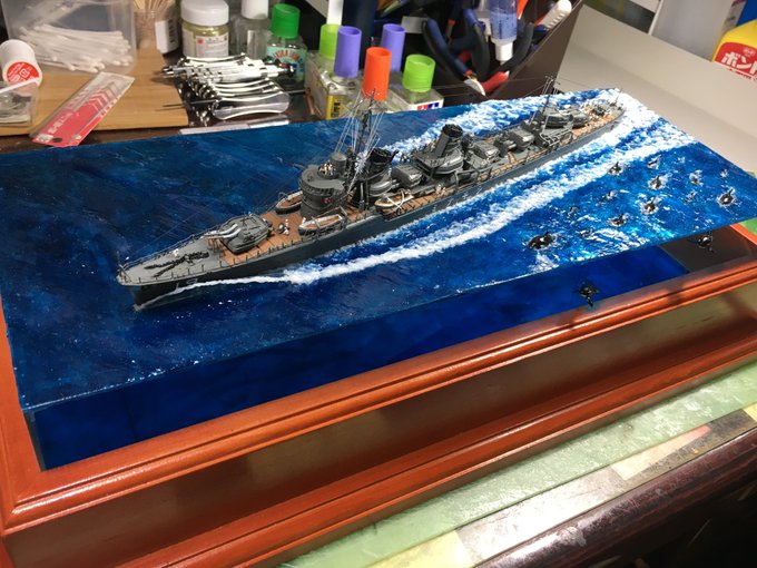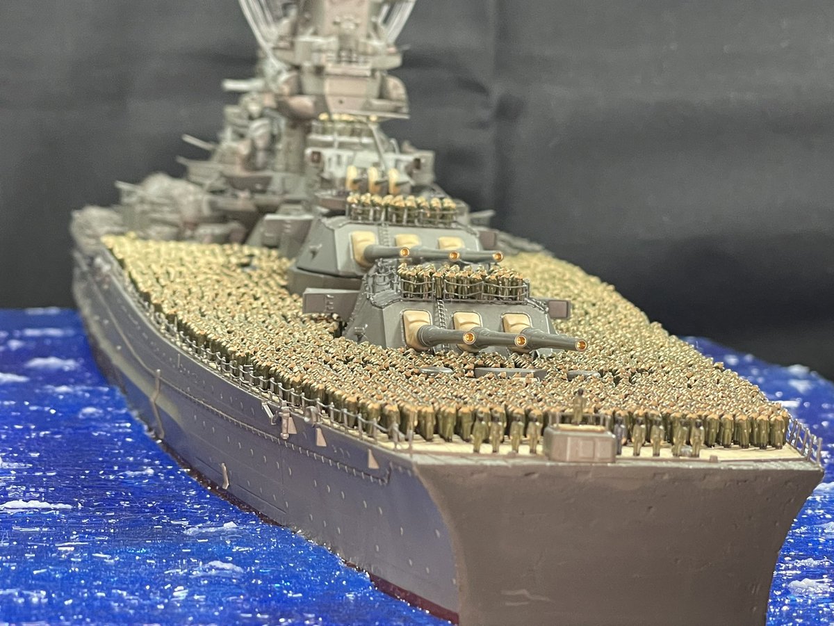 1/350スケール 乗組員は必ず乗せる。 海面をつくるけど、フルハル。 最近は海洋生物も泳がせる。 #貴様の模型魂の拘りは