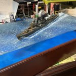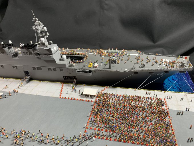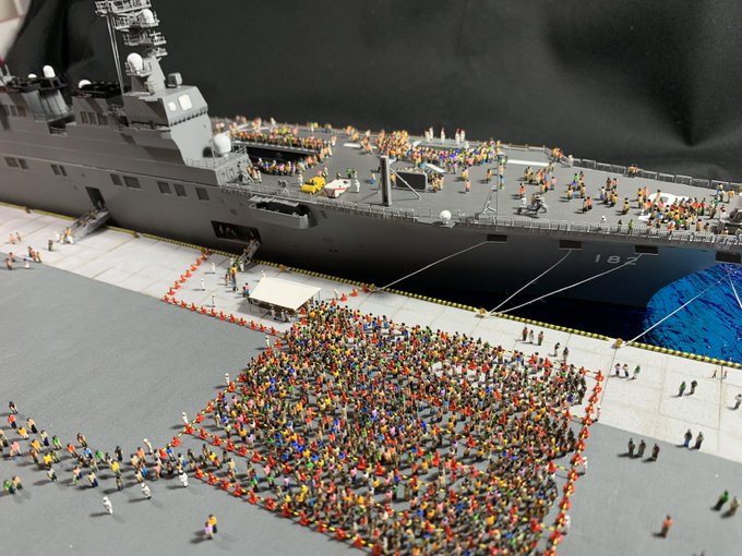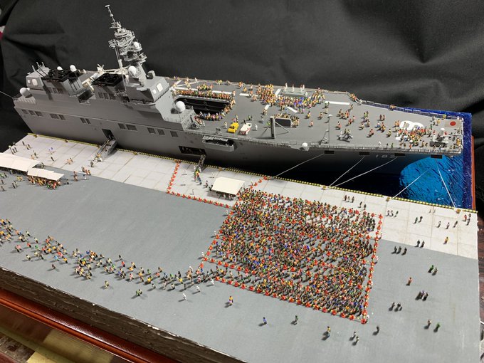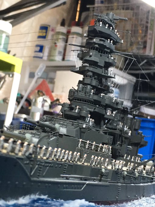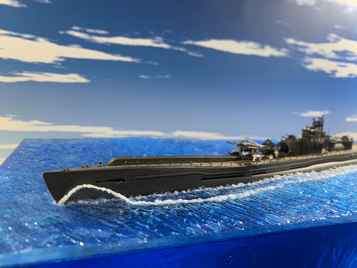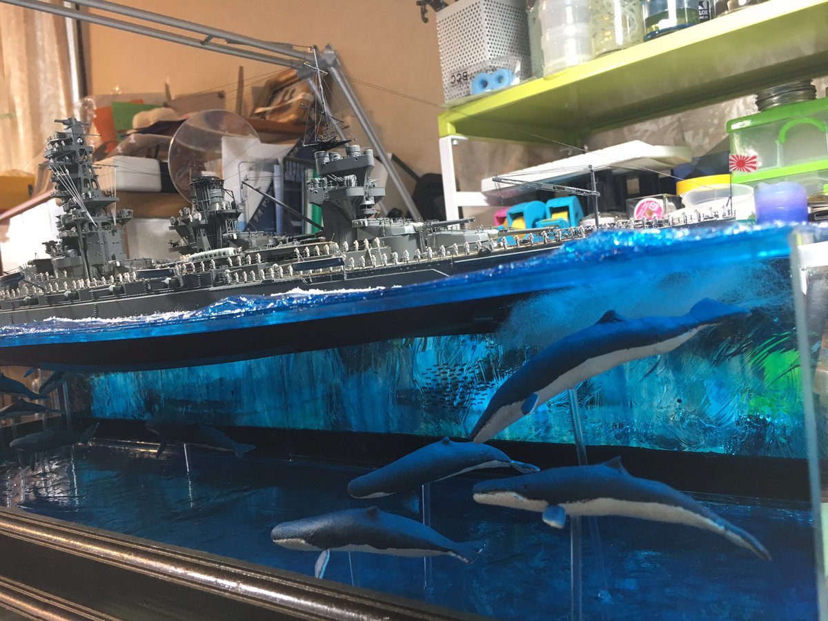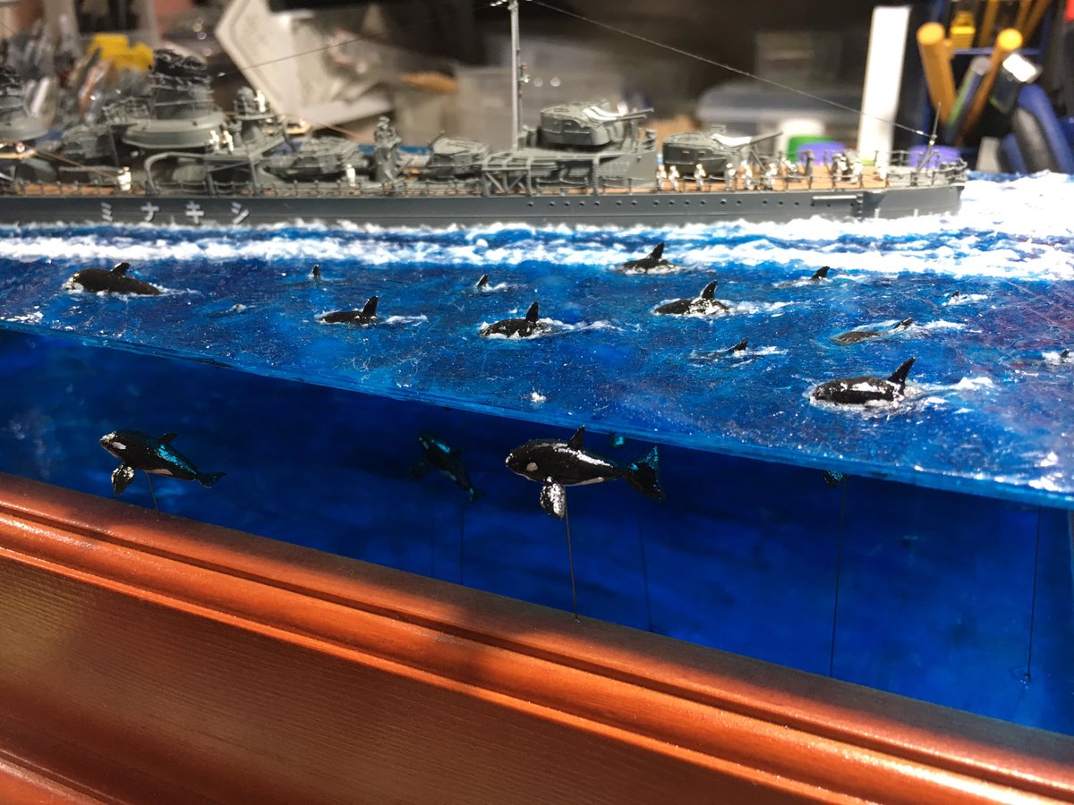 1/350スケール 乗組員は必ず乗せる。 海面をつくるけど、フルハル。 最近は海洋生物も泳がせる。 #貴様の模型魂の拘りは