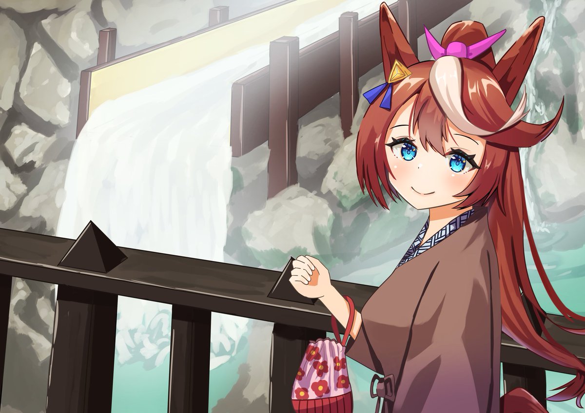 199 967 テイオーと草津温泉へ旅行に行くイラスト。湯畑を散歩しているところを描きました。 #トウカイテイオー #ウマ娘 22/08/03 18:31