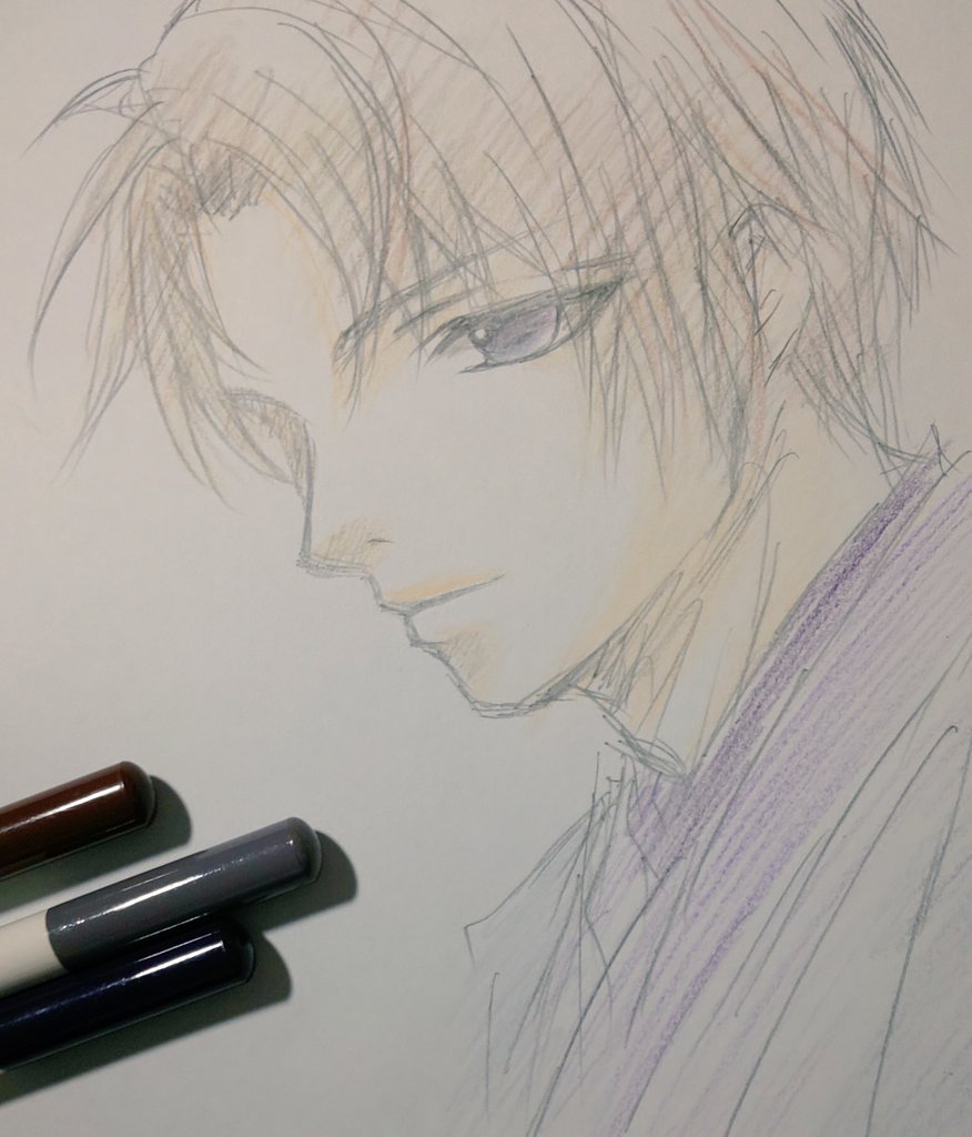 推しが出演する舞台楽しみだな🎶 応援してます!と思って描きました✨ アナログ絵を写真に撮ったものです 原作に寄せたつもり💦難しっ! 似てる似てないは置いといて、気持ちだけはこもってるよ☺️