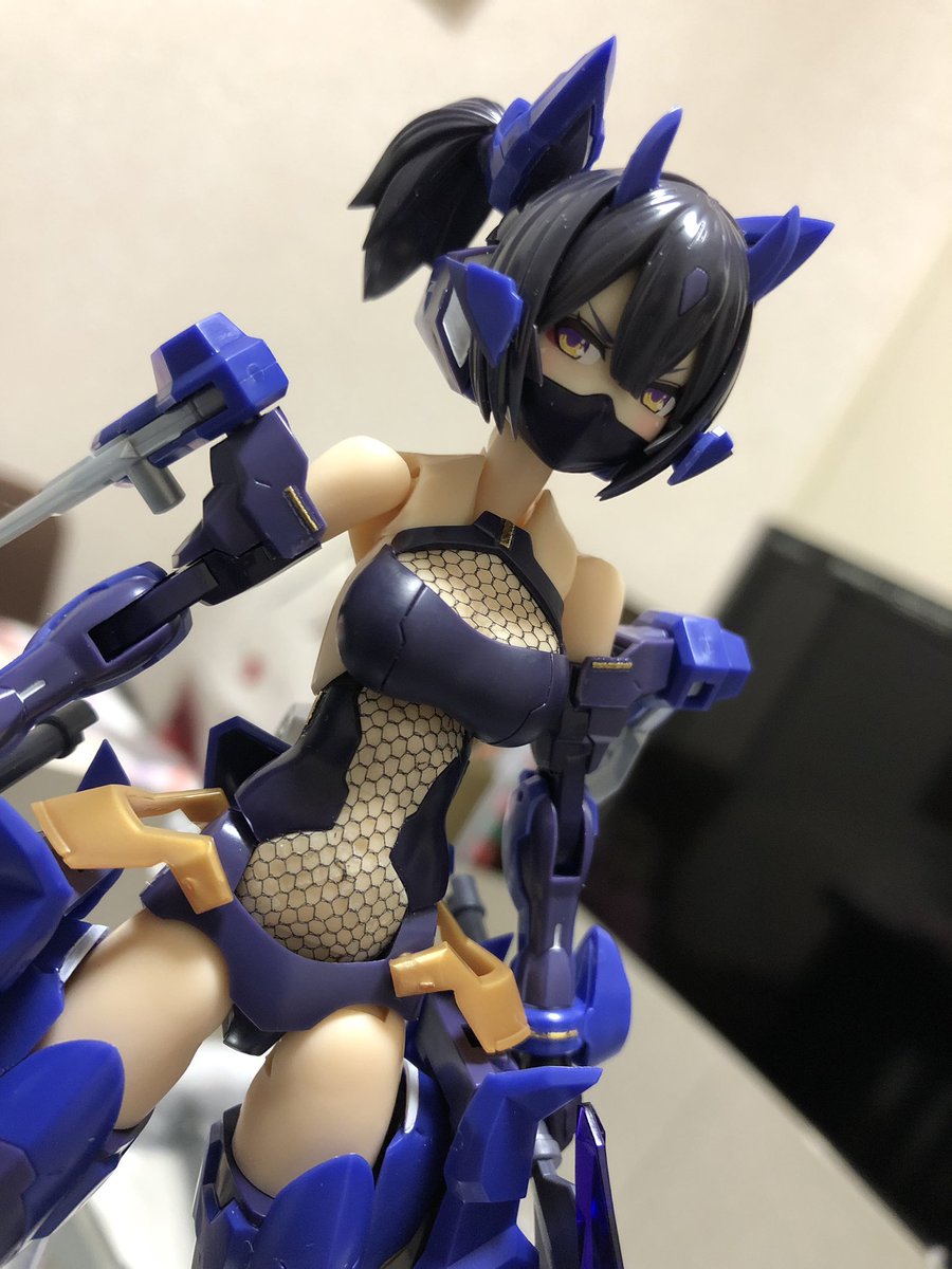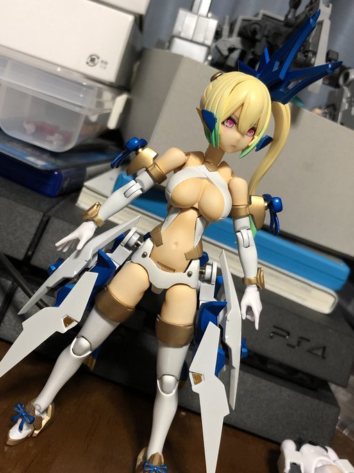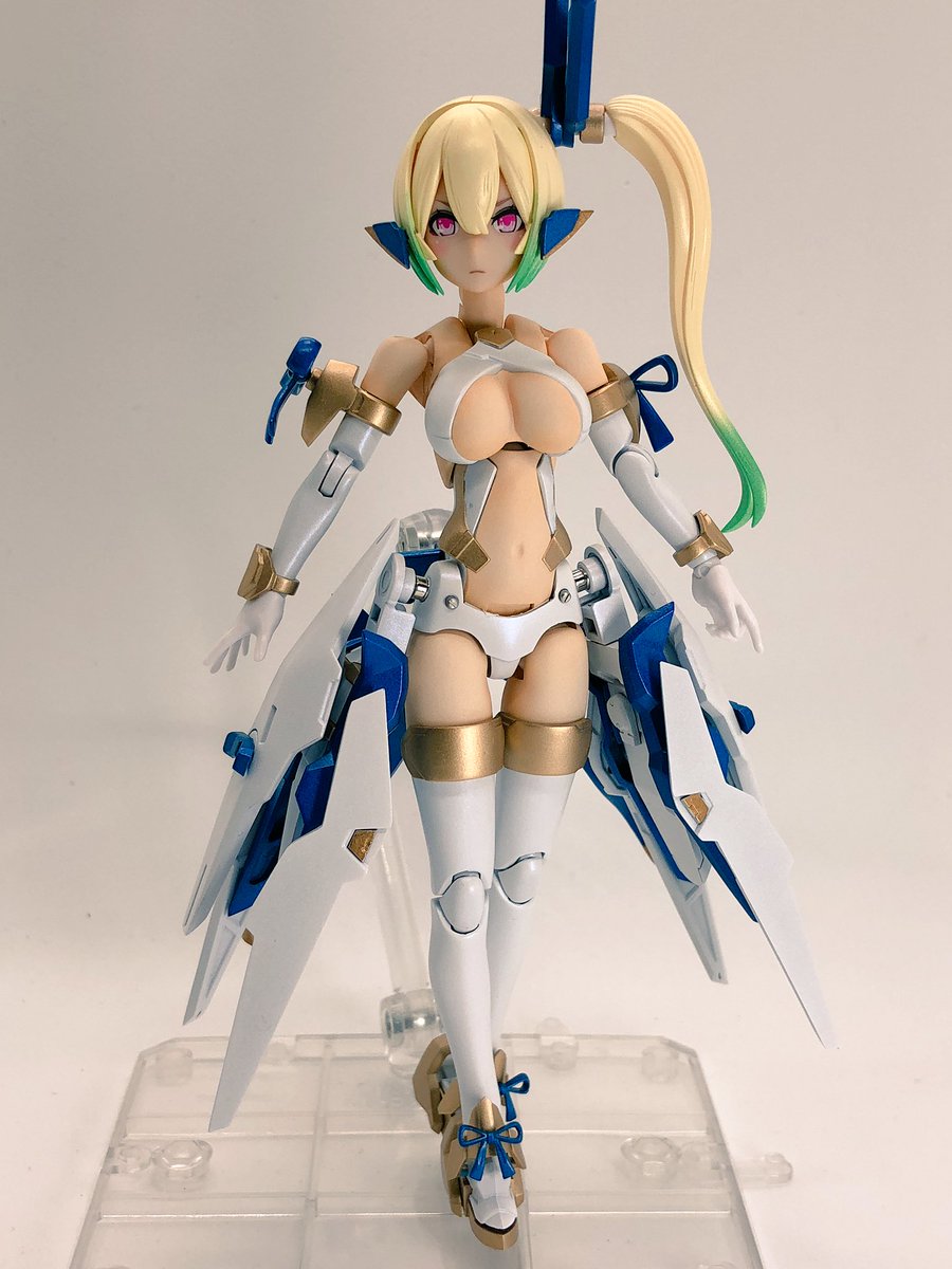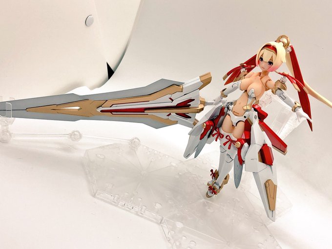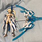 せっかく完成したのでポーズ撮らせて撮影しようとしたが、蒼き渦に慚愧する武器がデカ過ぎて保持用のスタンド調達しないとアカン悲しみ。 #メガミデバイス