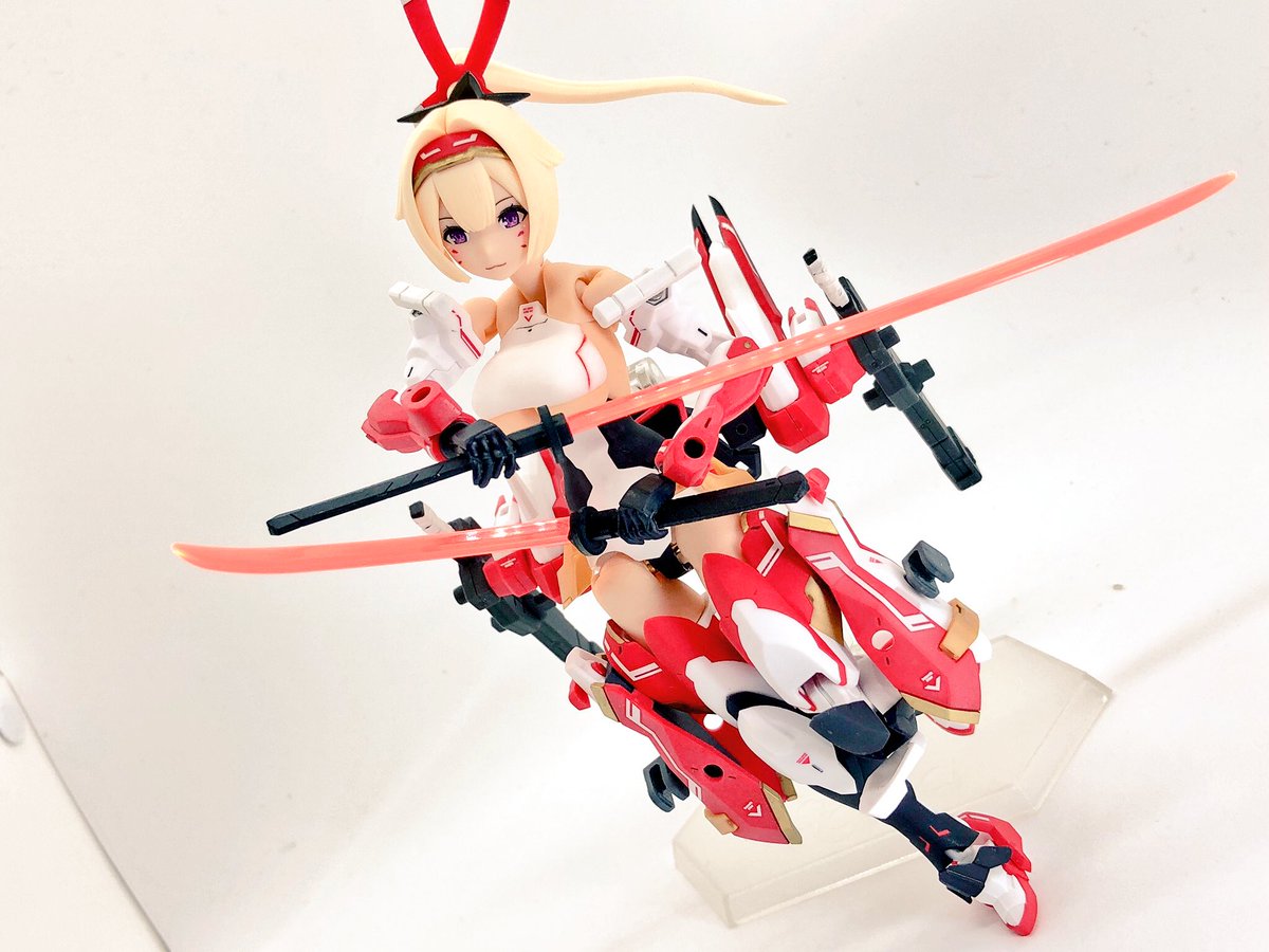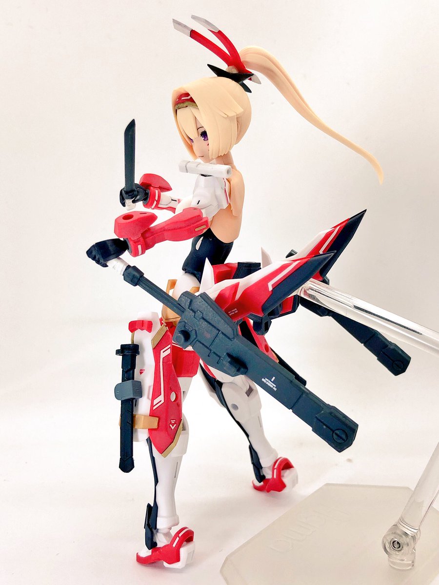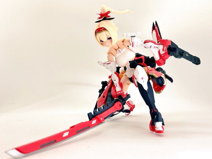 ようやっと楓さん組み終わった。 シタデルカラーの白と赤でほんの一部分だけの部分塗装。 #メガミデバイス