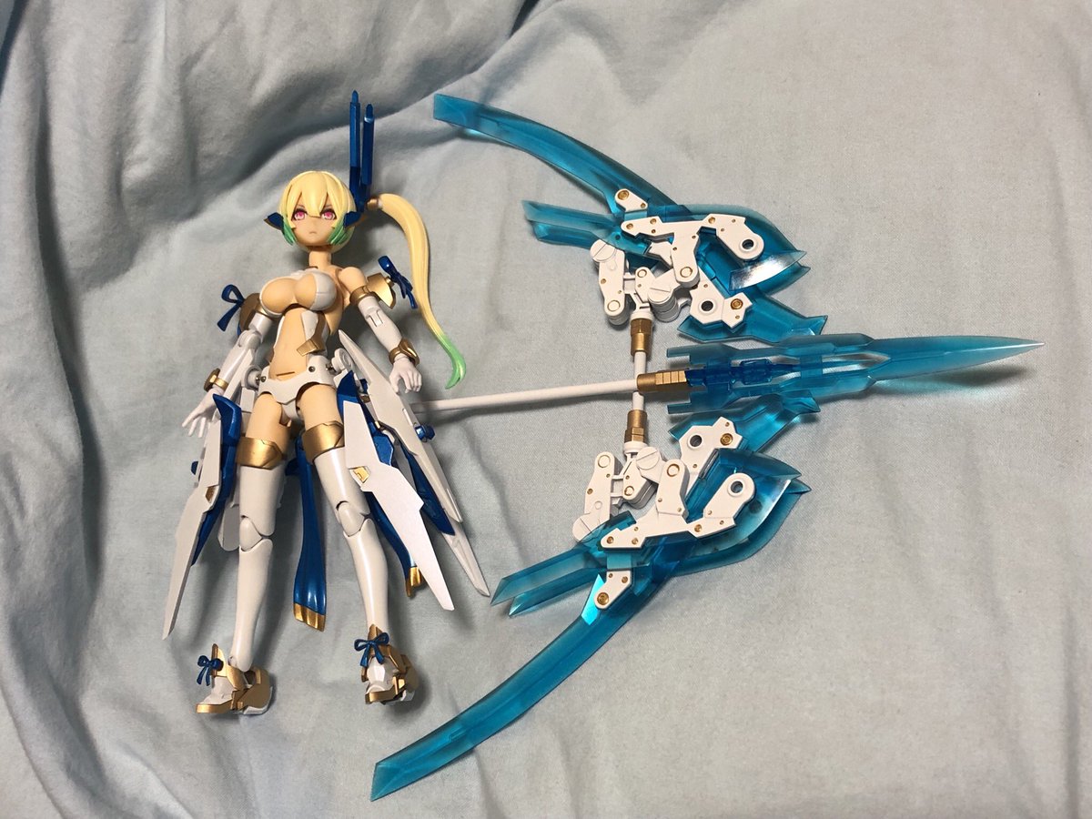今年終わる前に上げとかないと。 メガミデバイス神依四神型 神依・清龍、名前は蒼華。 大弓アクアリムスによる遠距離射撃を得意とする。 #メガミデバイス