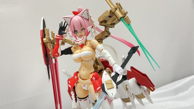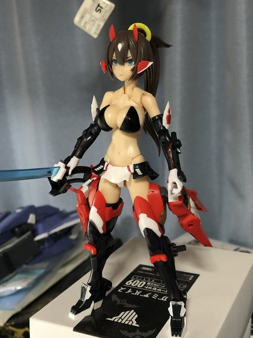 進行中の作品がまだ時間かかりそうなので過去作品でお茶を濁す。 朱羅七天剣士の夕莉。 実体剣3本とビーム剣4本の系7本の剣を装備。もしかしたらリペアⅣまで行くかもしれない。 #メガミデバイス