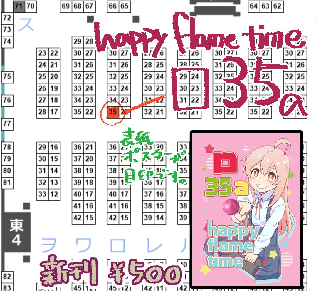 当選してました!ケモミミ本出す予定です! あなたのサークル「happyflametime」は、コミックマーケット100で「土曜日東地区 "I " 12a」に配置されました!コミケWebカタログにてスペース配置場所公開中です! webcatalog.circle.ms/Circle/Map/162… #C100WebCatalog