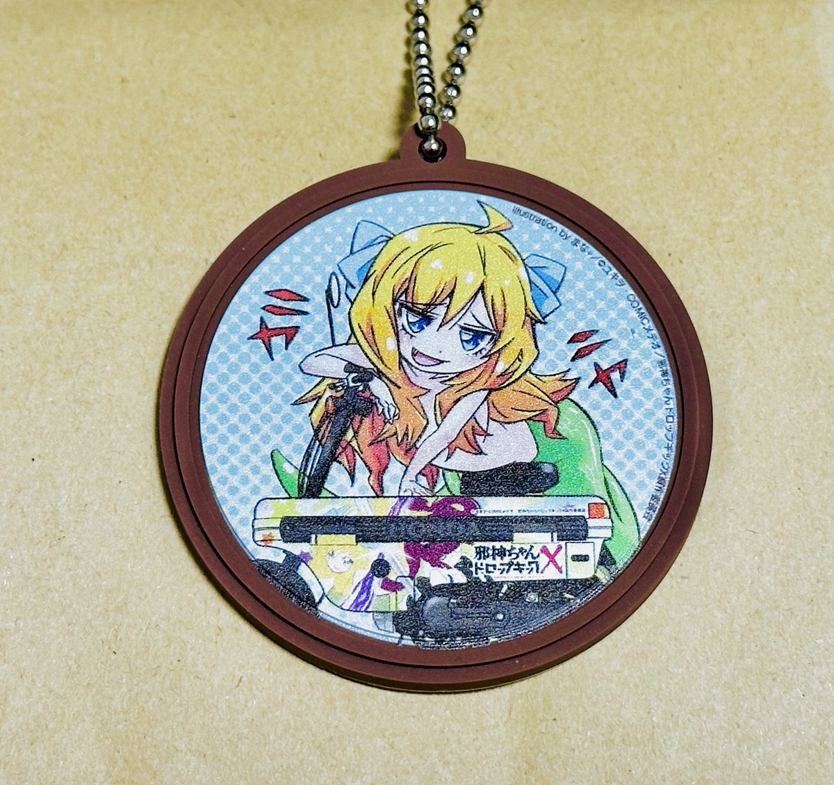 #邪神ちゃん痛モトコンポ 専用キーホルダー(ラバー製)が出来ました!モトコンポに乗ろうとしたら先に邪神ちゃんが乗ってて乗らせてくれない!(笑) こちらもイラストは、まな+(@mana_tasu )さんにお願いしました。 #邪神ちゃんドロップキック #邪フェス