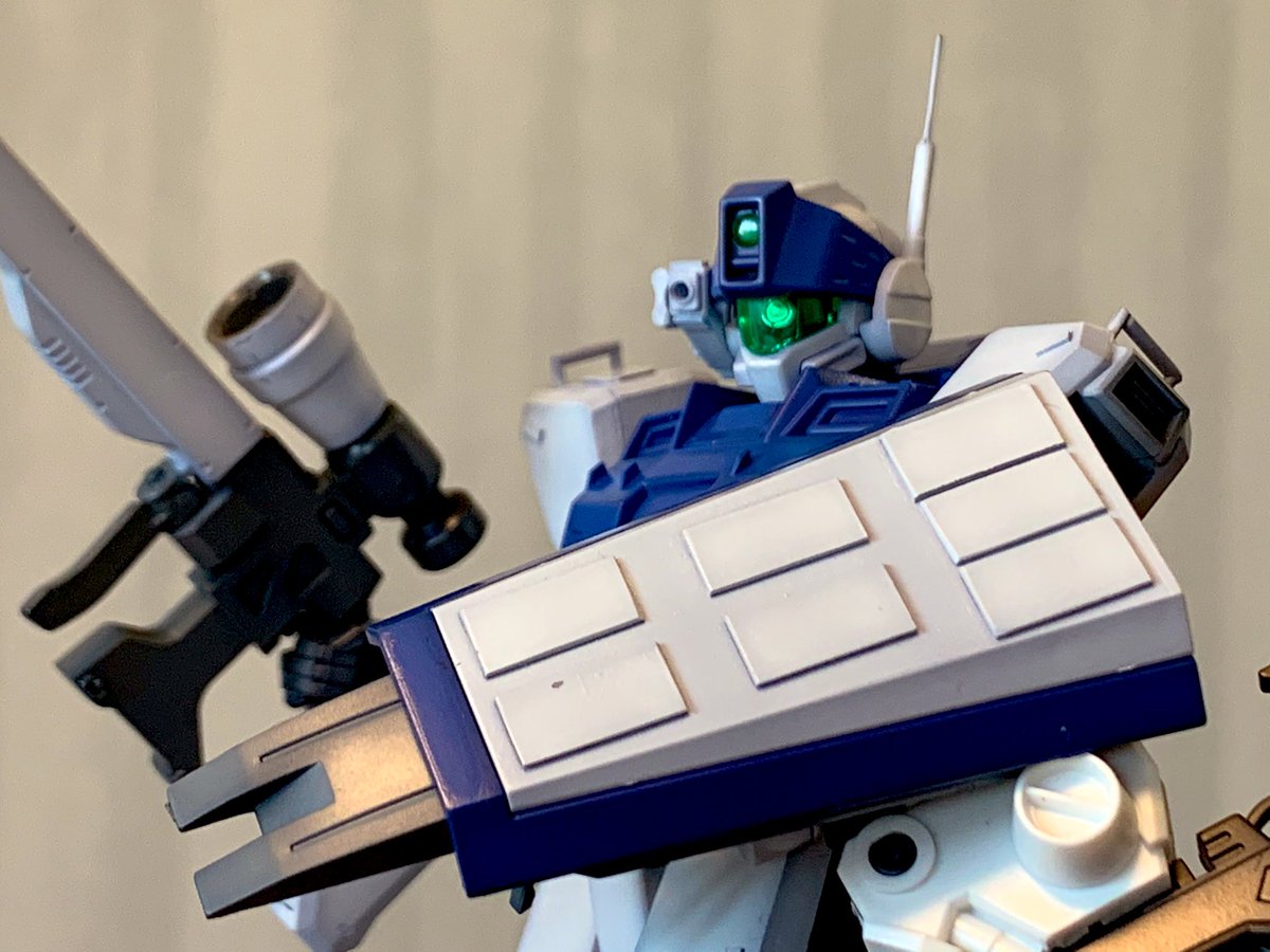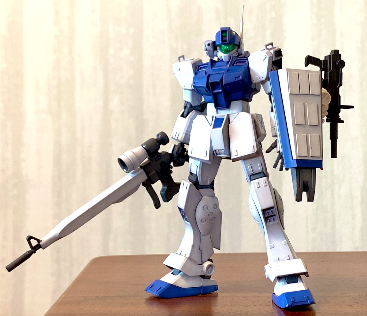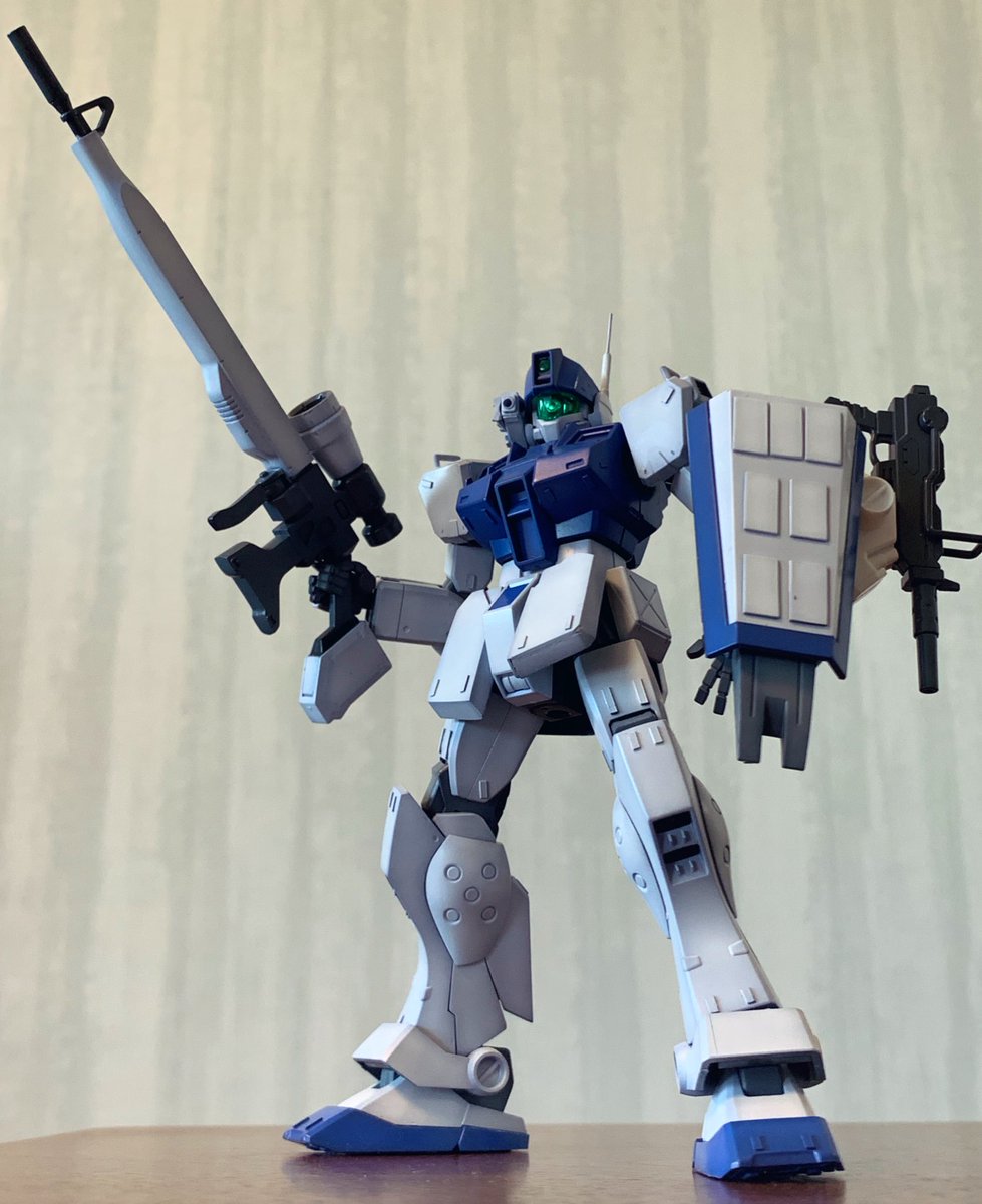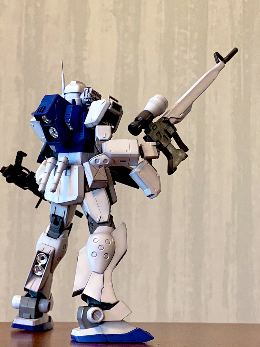 #ガンプラの画像貼るとRTされると聞いて #ガンプラ ジムスナイパー2の改造ビフォーアフター。 腰回りを延長、 肩を怒肩に変更、 背中バーニアを高い位置に変更、 各所をディティールアップ。 バルカンパッド