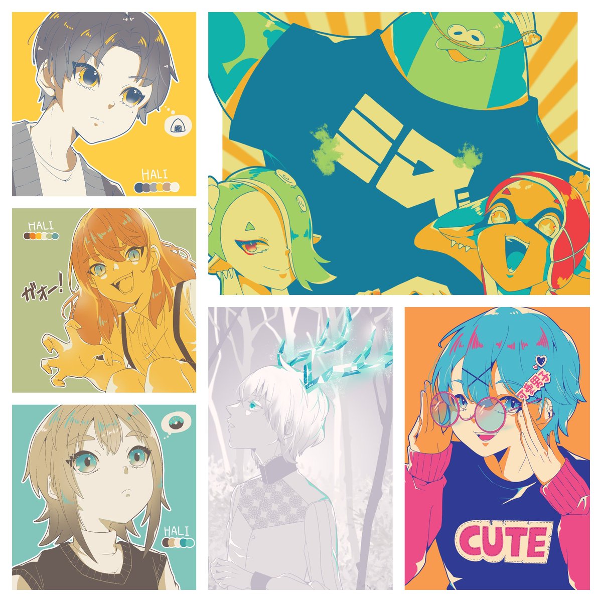 5、6色のカラーパレットを使ってイラストを描いてます🎨 どなたか発掘してくださ〜〜〜〜〜い!!!!!!!(クソデカボイス) #三億アカウントの中から私を発掘してください #春の創作クラスタフォロー祭り