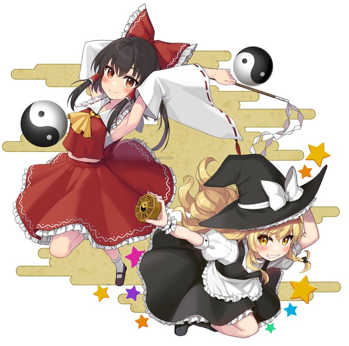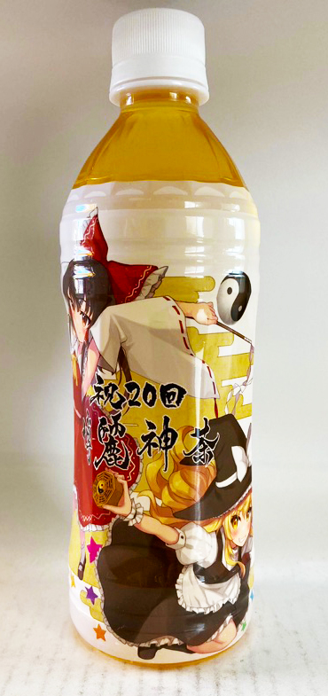 博麗神社例大祭の20回記念グッズにお茶のペットボトルイラスト描かせていただきました!🍵20回めでたい!!! 2枚めが実物サンプルです。 reitaisai.com/rts20/goods/