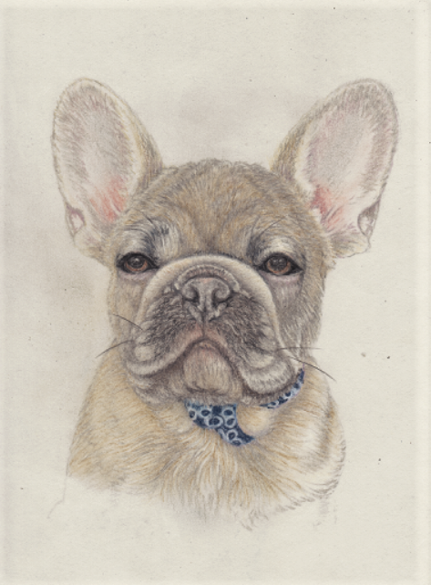 ウォッカ&うぉっかさん@RVpp7Tmh1d4ZQQ8からご依頼頂いたフレブルのう~ちゃんを描かせて頂きました🙇 これからミッキーさんとまおさんを描かせて頂きます✌️😊 #フレンチブルドック #ペットポートレイト #色鉛筆画 #トンボ色辞典 #プリズマカラー #ポリクロモス #カランダッシュパステル