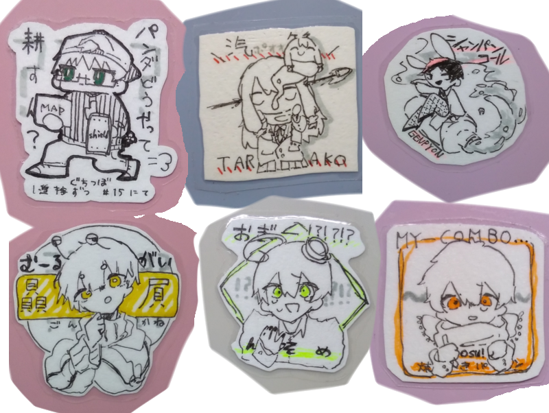 #害悪なشォ기ششششでいいですか 自作ステッカーもどき ←さっき作って力尽きたやつ去年作ったやつ(加工超雑)→