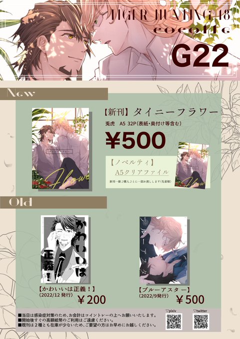 虎狩18 スペース:G22 cocotte スペース頂きました!よろしくお願いします☺️