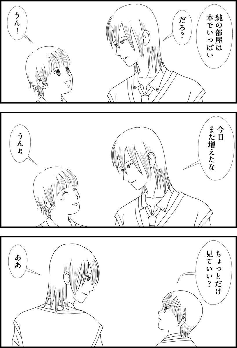 〖勇騎×純〗第14話~部屋でふたり初めての…~ 3/3 初めて勇騎の部屋へ行った純…。 #勇騎と純 #勇純 #BL #イラスト #絵 #漫画 #illustration #ラフ漫画 #ベタもトーンもホワイトも修正もしていない漫画 #漫画家生活で初めて描いたキスシーンがBL