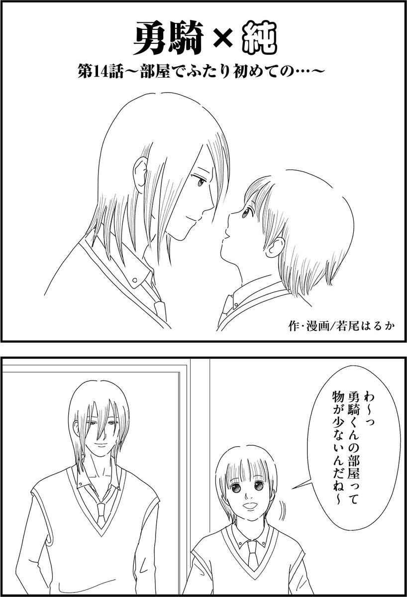 〖勇騎×純〗第14話~部屋でふたり初めての…~ 1/3 初めて勇騎の部屋へ行った純…。 #勇騎と純 #勇純 #BL #イラスト #絵 #漫画 #illustration #ラフ漫画 #ベタもトーンもホワイトも修正もしていない漫画 #漫画家生活で初めて描いたキスシーンがBL